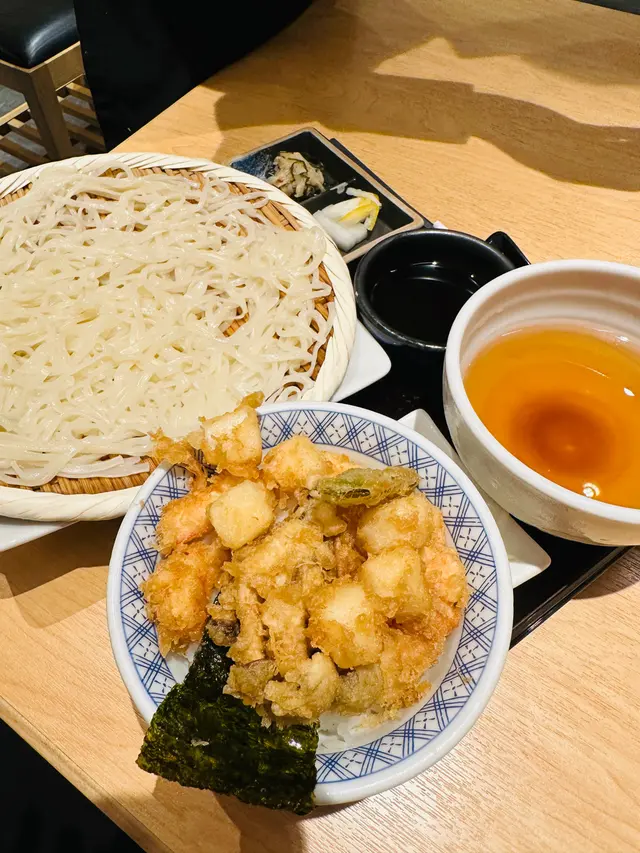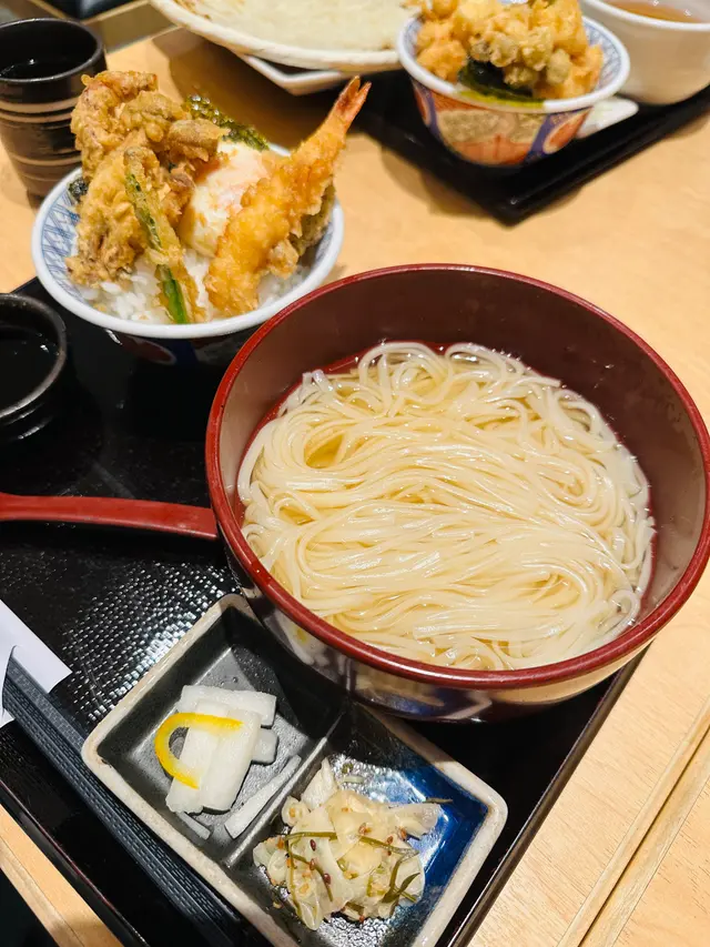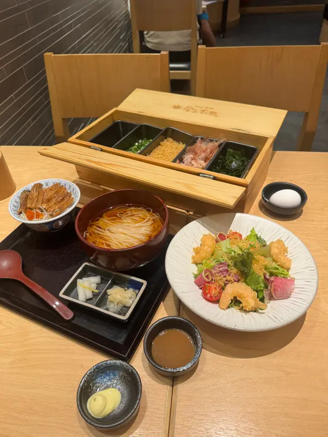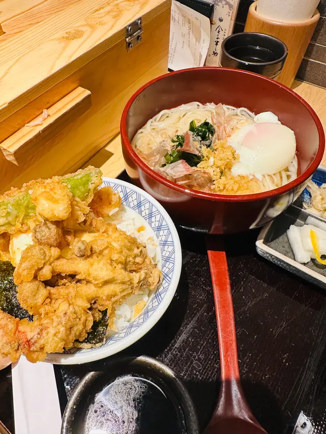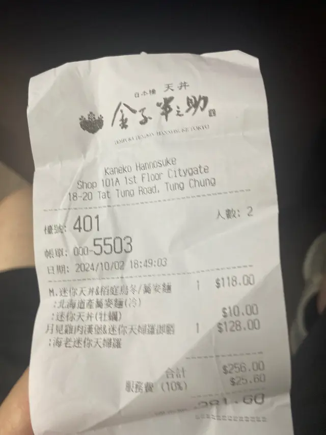 入東涌Outlet行街, 發現原來有間食天婦羅既金子半之助,平時係市區都要等位,難得今次可以直入,即刻去試試。餐廳裝修以木系為主,牆上仲畫左大大棵櫻花樹,猶如置身日本。一入左就比左兩杯黑豆茶~味道濃郁叫左個必食既江戶前天丼,份量十足! 入面既招牌穴子天婦羅長達30cm, 大大大大件好吸引,超厚肉身,肥美軟滑。兩隻海老彈牙爽口,小柱魷魚天婦羅餅入口煙韌,炸前輕輕係面𠝹左格仔花, 可以逐格食,好方便。流心蛋炸得啱啱好、香濃蛋汁同埋海苔及、莢豌豆一齊食,味道豐富。朋友叫左個迷你魷魚&海老天丼, 由於金子半之助採用日本特製高級胡麻油,胡麻油製成的天婦羅芳香撲鼻及色澤會較深,所以整體炸得均勻,唔會好油膩,內裏仲保留咗食物鮮味,值得一讚。仲配多個冷稻庭烏冬,扁身既稻庭烏冬,沾上淡淡昆布凍湯先食,入口特別清爽。另外仲叫碟日式炸雞,果然係天婦羅專門店,雞肉外皮香脆,內裡鮮嫩充滿肉汁,一D都唔會太乾身,有驚喜!仲有個飲品放題,可惜食得太飽,下次有機會再試。…查看更多