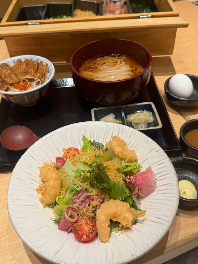 東涌outlet行街行到攰,強推「金子半之助」!呢間天婦羅專門店真係名副其實嘅老字號首先要澄清大家對天丼嘅誤解呢度嘅天婦羅唔係追求脆口反而係靠「古早秘傳醬汁」收汁外層薄衣吸滿濃郁醬香,軟糯入味完全唔會乾柴!醬汁帶住淡淡甜香同鮮味係老師傅傳承落嚟嘅配方配飯食真係一口接一口停唔到!仲有個亮點係日本特製高級胡麻油!用呢種油炸出嚟嘅天婦羅,色澤會較深而且一上枱就聞到陣陣胡麻香,芳香撲鼻比普通天婦羅多咗一層醇厚香味,口感更有層次!重點推介幾款必點菜式• 海老天押壽司:新鮮大隻嘅海老,外層裹住薄脆天婦羅衣配埋醋飯同蛋黃醬,鮮甜彈牙• 半之助沙律:沙律菜新鮮爽脆,淋上特調胡麻醬,酸甜開胃,正好平衡天婦羅嘅油潤感,食完唔會覺得膩。• 半生熟烤牛肉&天婦羅御膳:御膳份量超足!半生熟烤牛肉嫩到出血水,肉香濃郁;裡面嘅迷你海老天婦羅,外層帶住胡麻油香,內裡海老鮮甜• 帆立貝魷魚天婦羅餅:呢個真係創意滿分!帆立貝大粒彈牙,魷魚爽脆裹住薄衣炸至金黃,外層吸咗古早醬汁,鹹香帶甜,一口有貝有魷魚,滋味超豐富!呢間店嘅天婦羅做法獨特,古早醬汁同高級胡麻油簡直係靈魂,每款菜式都好有特色!東涌outlet行街嘅朋友,千祈唔好錯過呢間高質專門店,打卡絕對冇甩拖!…查看更多