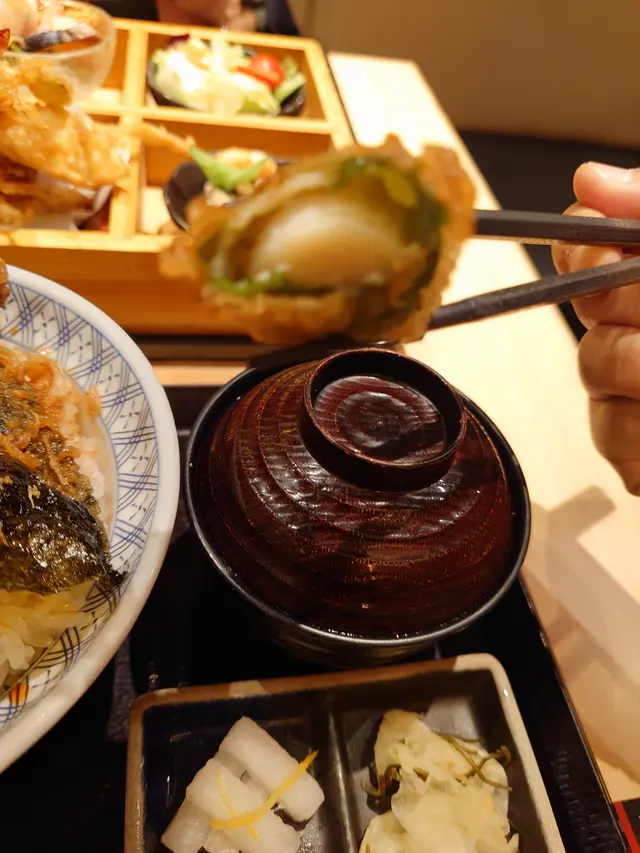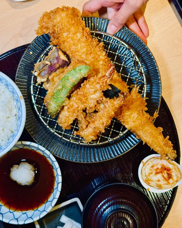 呢日下晝專登請咗半日假去「會展」行展覽,專注嘅程度真係連飯都唔記得食😌 行到打烊,餓到肚仔都打晒鼓... 好想食碗熱辣辣嘅飯🍚補充吓!醒起 #利東街 開咗間「金子半之助」,一於去尋回和式風味🤤餐廳大門裝飾得極有氣氛,推門入去已經聞到陣陣香氣,非常期待🫶🏻 餐牌上嘅食物以天婦羅🍤為主,我哋最終揀咗 #江戶前天丼、#迷你海老天丼併烏冬 開心share🫶🏻✨江戶前天丼#丼飯 放上滿滿嘅 #天婦羅,成把間尺咁長嘅 #穴子(#星鰻),#海老 (#蝦)、#小柱魷魚天婦羅餅、#海苔、#莢豌豆,仲有 #溫泉蛋,單係賣相已經夠晒吸引👀 用 #特製芝麻油 炸出嚟嘅天婦羅🍤特別香口,而且入口鬆化,再加埋啲甜豉油喺面... 話咁快我哋就清咗面前碗飯喇🤭✨迷你海老天丼朋友另外點嘅 #迷你天丼 份量都唔少,#菇菌、#海老、#南瓜、#海苔、#溫泉蛋、#莢豌豆 ... 樣樣齊😉 另外我哋仲加咗$20加配 #牡蠣(#蠔),肥嘟嘟嘅蠔肉鋪上薄薄炸漿,零舍香口🤤 而套餐仲包咗一碗 #讚岐湯烏冬,烏冬口感煙靭,我哋喺湯底加入 #草花 同 #木魚花,令味道更加鮮味🤤✨日本產牡蠣為食嘅我哋,追加咗一份 #牡蠣天婦羅,即叫即炸嘅天婦羅份外好味🤤 最後再飲埋店員為我哋準備嘅 #黑豆茶🍵 暖一暖個胃... 整個組合完美呀🫶🏻📍金子半之助 (灣仔) 皇后大道東200號利東街地下G16號舖 …查看更多