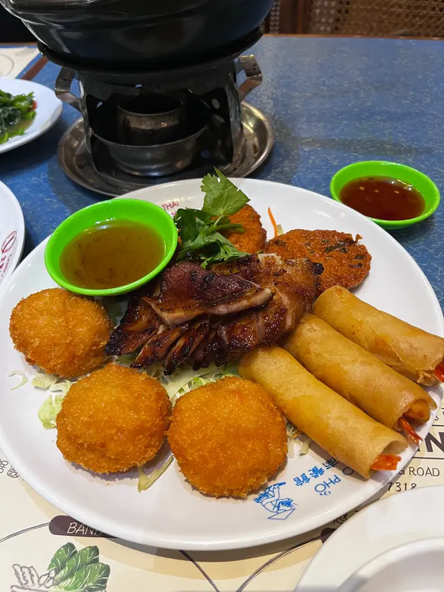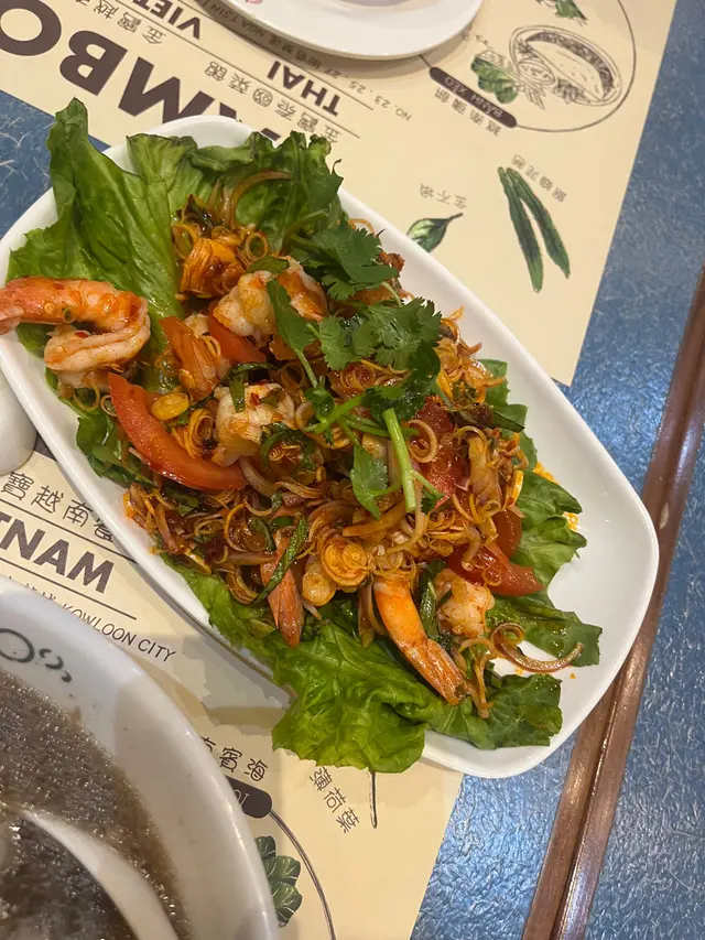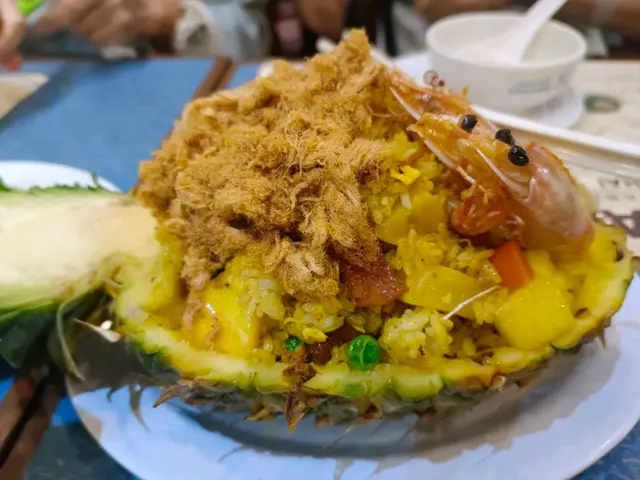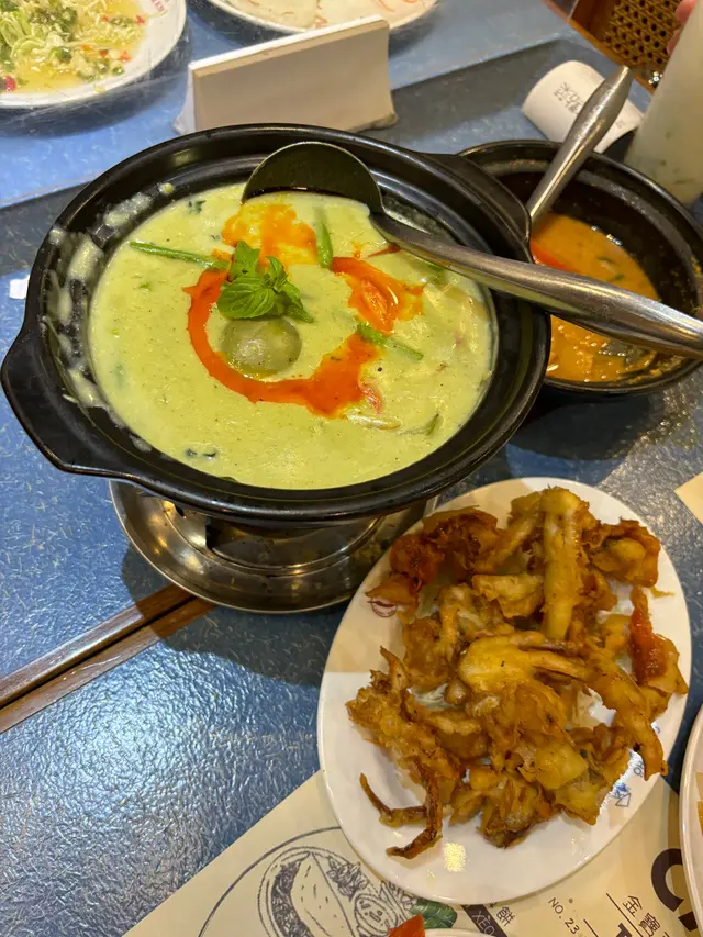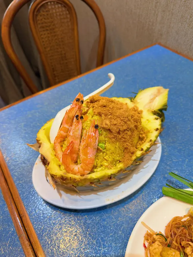 原來金寶在九龍城又係有兩間舖,仲要兩間舖係連埋一齊,一間金寶泰國菜館,一間金寶越南餐館,在金寶可以食泰國菜又可以食越南菜。越南菜就留返下次再試,今次試左泰國菜先,食泰國菜又點可以唔叫活蝦刺身,味道鮮甜,肉質彈牙,醬汁開胃!活蝦刺身作為前菜無得彈!主菜:椰汁青咖哩軟殼蟹、菠蘿焗飯,小食:醬爆蝦丸、泰式炸蝦餅!椰汁青咖哩撈菠蘿焗飯真係好夾,辣辣地又甜甜地,口感一流!再有炸既軟殼蟹同蝦丸蝦餅送飯,真係好豐富既一餐泰國菜!…查看更多