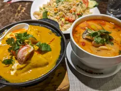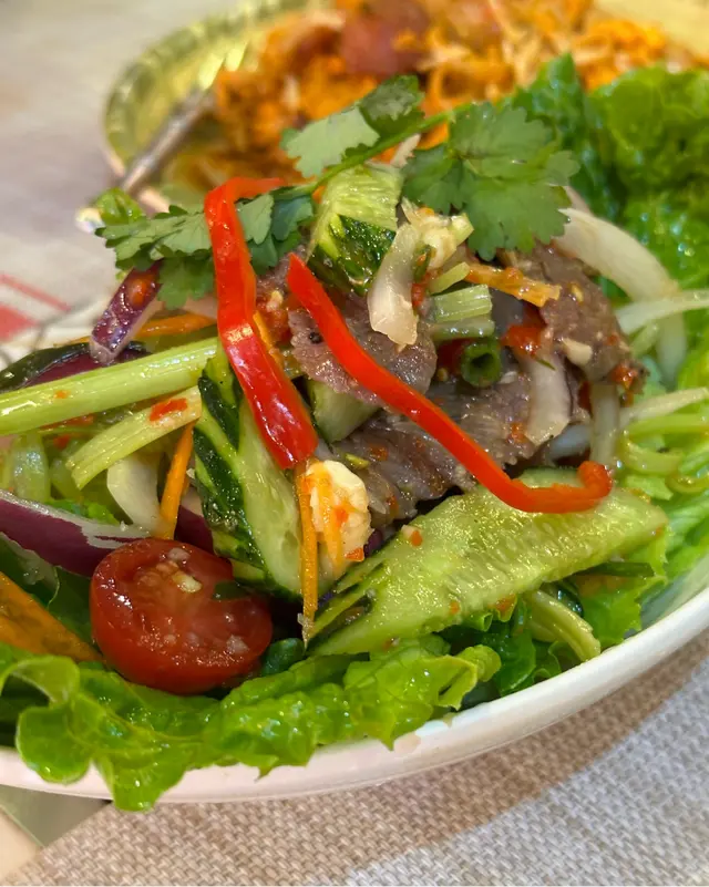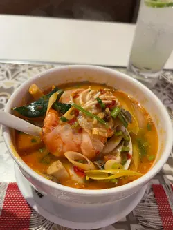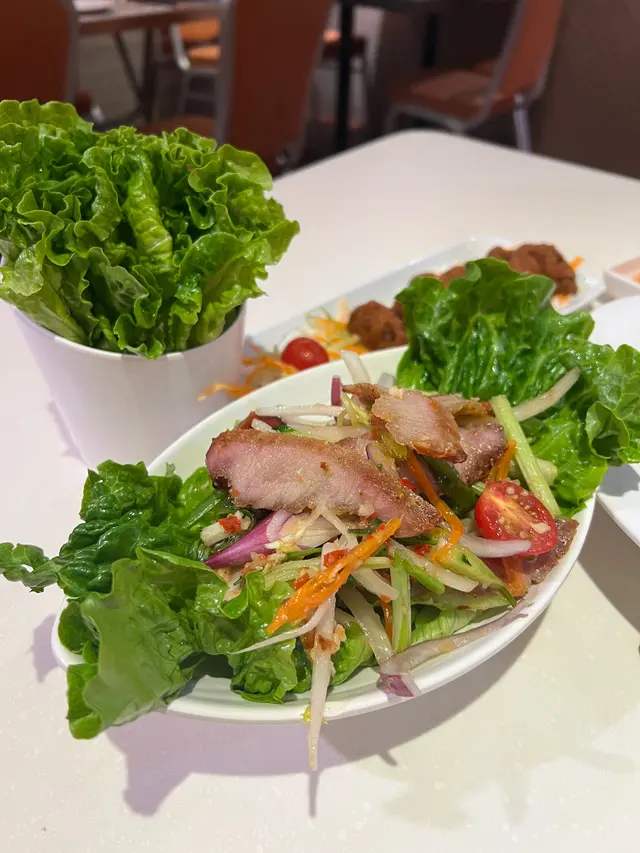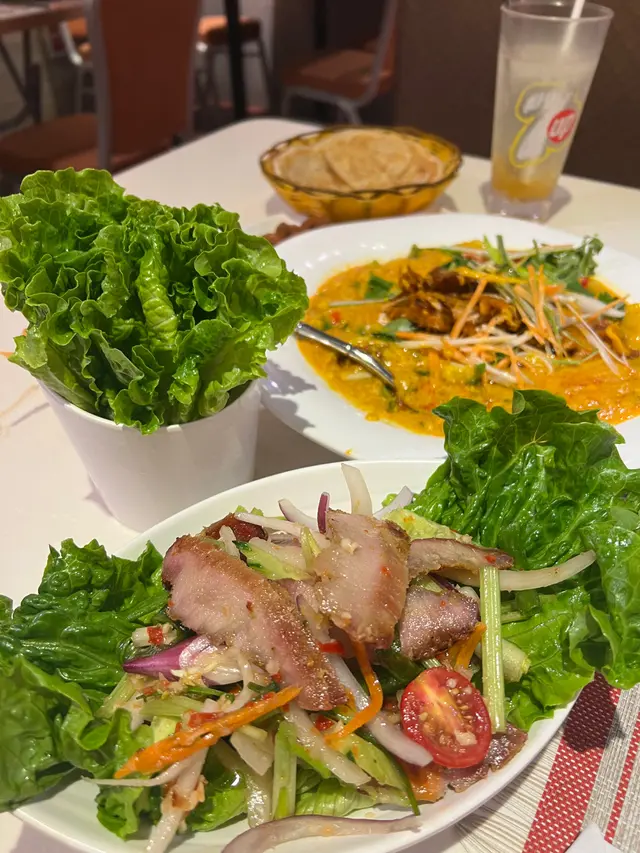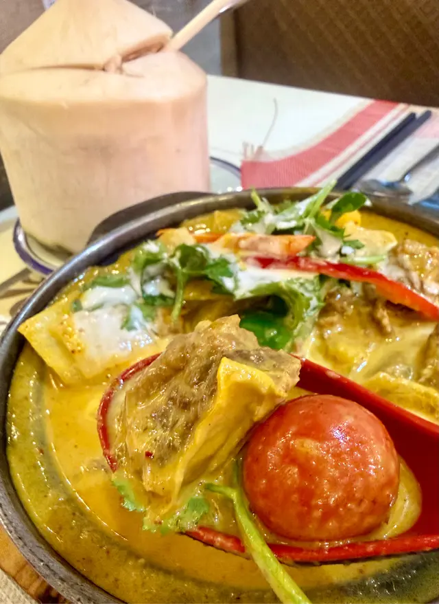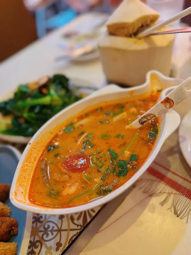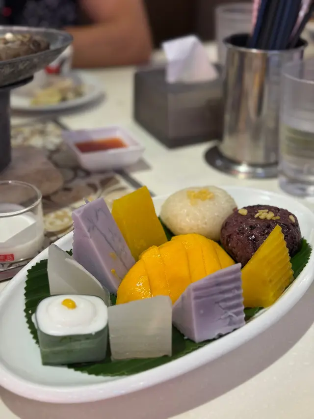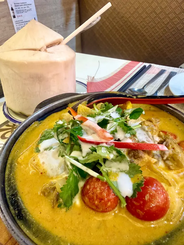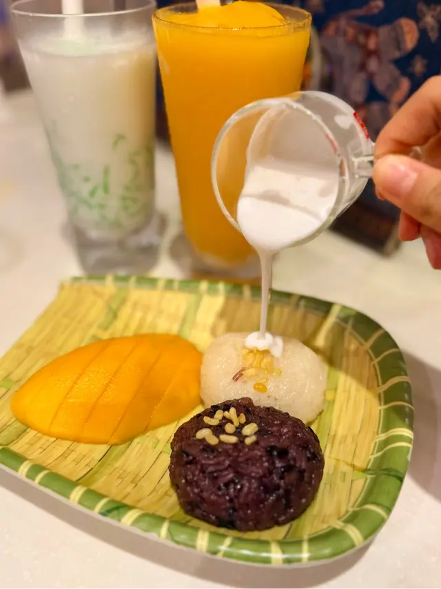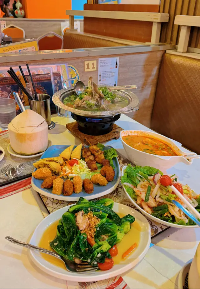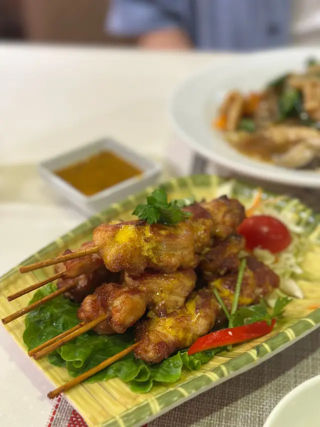 荃灣泰國菜餐廳選擇多.今次我試咗近Citywalk嘅依間餐廳, 真心唔錯!菜單超豐富.串燒、炒菜、河粉、海鮮、甜品, 應有盡有.而且價錢親民, 性價比高.令我忍唔住叫多幾款嚟試.泰式濕炒豬肉河粉 (HK$78)可揀乾炒或濕炒.肉類方面, 有豬、牛、雞揀.今次我就揀咗個平時少食嘅濕炒豬河.濕炒河芡汁會比較多.河粉幼身, 口感煙韌.係用豆瓣醬炒, 好香, 好有鑊氣.除咗有豬肉片, 仲有菜同埋菇.調味適中, 食落唔會好鹹.沙嗲串燒雞肉 (HK$88/6串)我覺得沙嗲配雞肉係最好食, 所以揀咗雞串燒.依個雞肉燒得乾身咗啲.不過點埋濃郁嘅沙嗲醬食都幾惹味.馬拉盞炒鮮魷通菜 (HK$88)炒通菜都有兩款.我揀咗有魷魚嗰款.魷魚爽脆.通菜微辣.我覺得用嚟餸飯應該幾啱.芒果糯米飯 (HK$38)白色嗰隻硬身啲.紫色嗰隻軟糯啲.芒果超甜.落咗椰奶嘅糯米飯甜甜地鹹鹹地咁, 我覺得好好食.原個鮮椰青 (HK$35)椰青好大個.椰青水好清甜.菠蘿沙冰 (HK$30)夠晒冰.唔係好甜.飲完好爽.整體嚟講, 呢間泰國菜味道地道, 選擇多, 抵食又滿足.鍾意食泰國菜嘅朋友, 值得一試!…查看更多