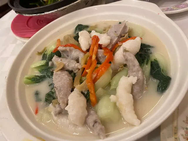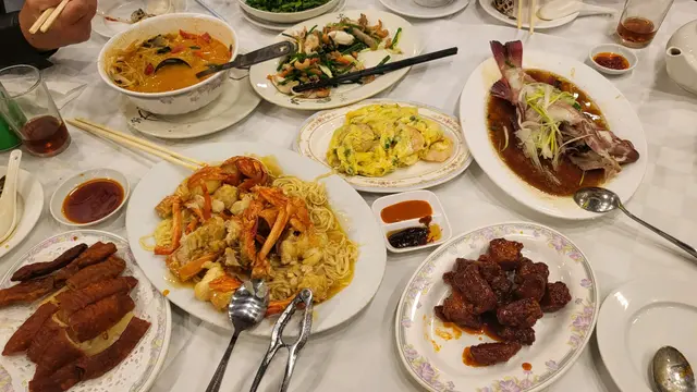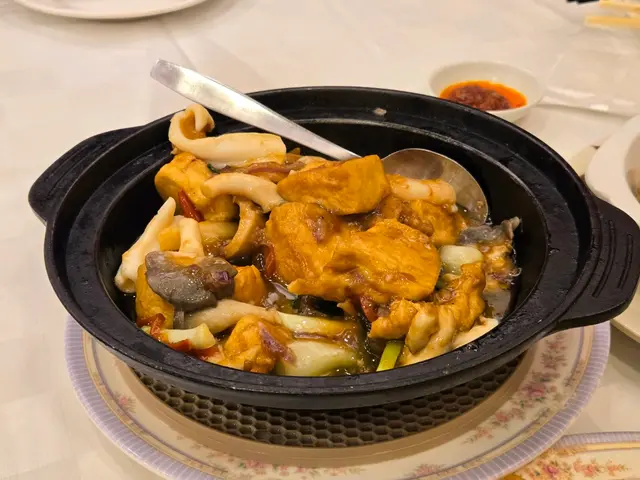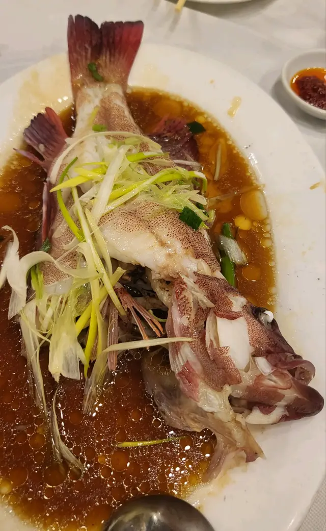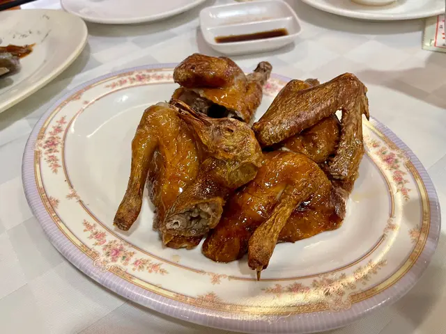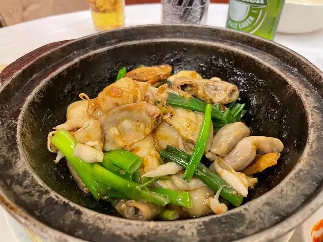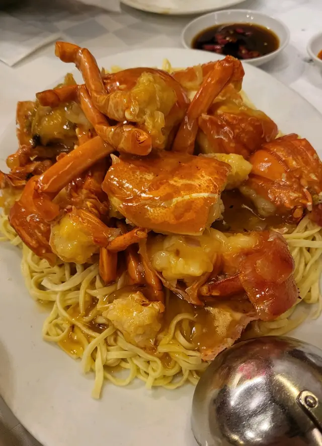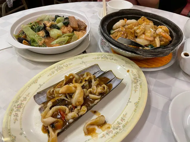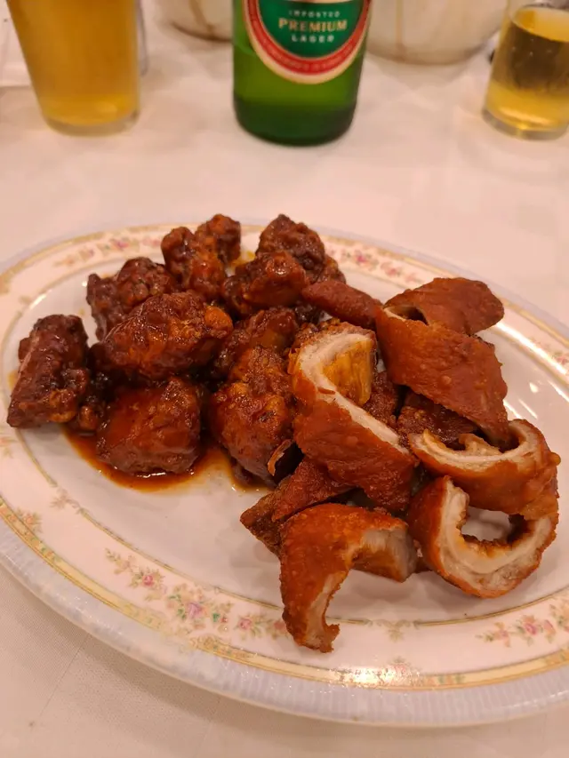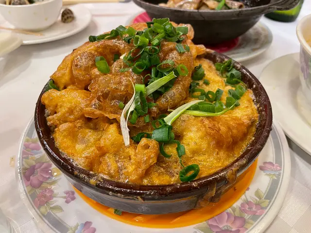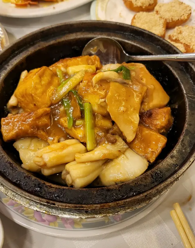 想食地道風味,友人推薦這海鮮酒家,雖然地方門面有歲月痕跡,但實在抵食不用錯過,要支持下老舖。#南乳吊燒雞,大大隻,肉質嫩滑多汁,南乳味不會搶去雞肉味,老店才有這味道。#馬拉盞海鮮豆腐煲,海鮮足料,有魷魚、蝦、魚塊,豆腐又滑溜,配馬拉盞非常惹味。#沙拉醬燒骨,一上菜傳來陣陣香味,急不及待的搶食,影相都影唔切,甜甜好送飯。#黃金墨魚餅,大大塊非常脆口彈牙。#足料豬肺湯,食完熱氣野,都想清清地飲下湯,這個老火湯,清潤滋補。…查看更多