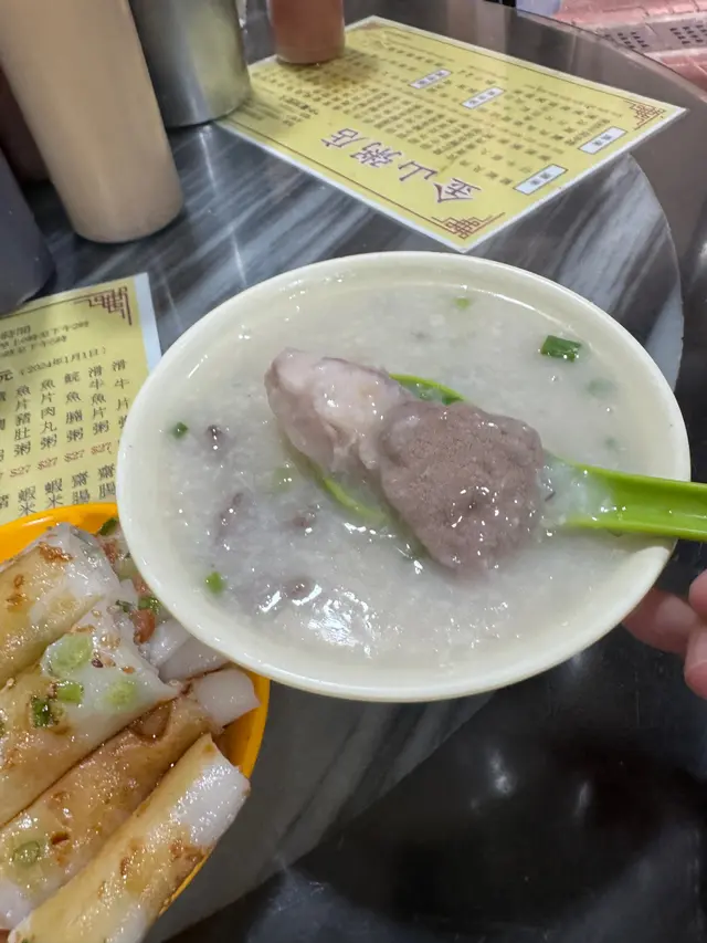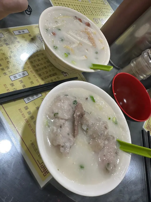 平靚正粥店 頭名字M等级42025-04-16890 浏览 关注 經常到訪西貢而金山粥店一直在我的願望清單之內,此前數次到訪均吃閉門羹,今日見開門兼不用等候,便立即入座。粥店由夫婦經營,女的主理粥品,男的主理腸粉。餐牌很簡單,但食品項目絕對充足。粥店有數款生料可以選擇,最終點了豬肚拼鯪魚球和豬膶拼鯪魚球的生滾粥,當中以豬膶最為甘香味美,滋補可口。腸粉即叫即拉,粉皮十分細滑,牛肉餡料也非常軟潤,但最為突出的是加在腸粉上的蝦米碎,鹹香豐富,外加只需2元,絕對值得。油炸鬼和炸両均可點半份非常大衆化,只是油炸鬼不夠新鮮,像是擺放了一段時間。…查看更多+ 2以上食记乃用户个人意见 , 并不代表OpenRice之观点。赞好分享平靚正粥店 金山粥店 https://s.openrice.com/QrLT019TR00检举 张贴 评分4味道3环境3服务3卫生5抵食推介美食豬肚鯪魚球粥$27豬膶鯪魚球粥$27牛肉腸加蝦米$22用餐日期2025-02-05用餐途径堂食人均消费$40 (午餐)