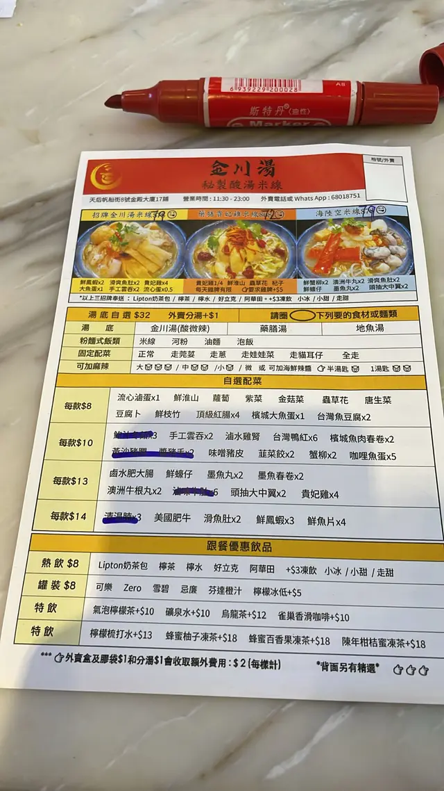 金川湯秘制酸湯米綫 (天后) 网址: https://s.openrice.com/QrLS0k64C00 地址: 香港天后帆船街8號金殿大廈地下17號舖 电话: +852 68018751
