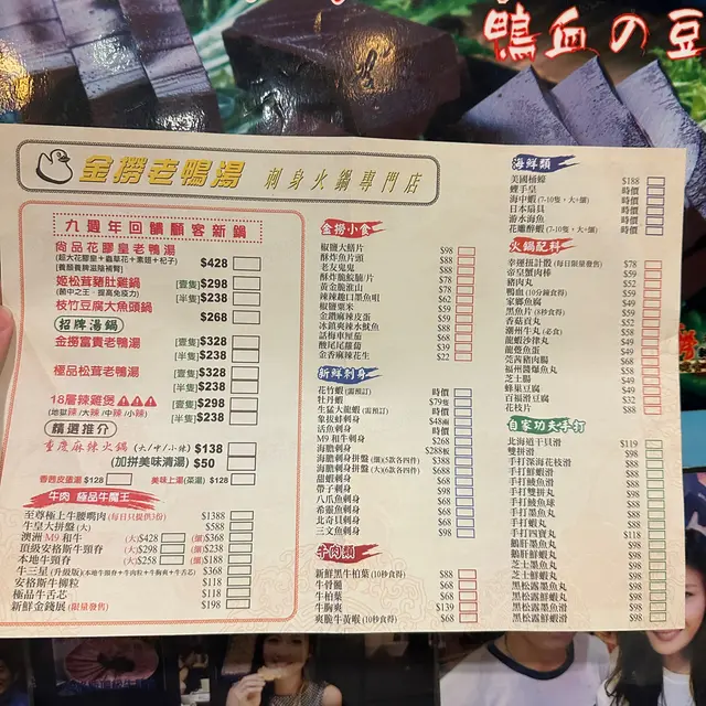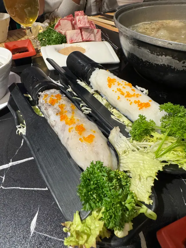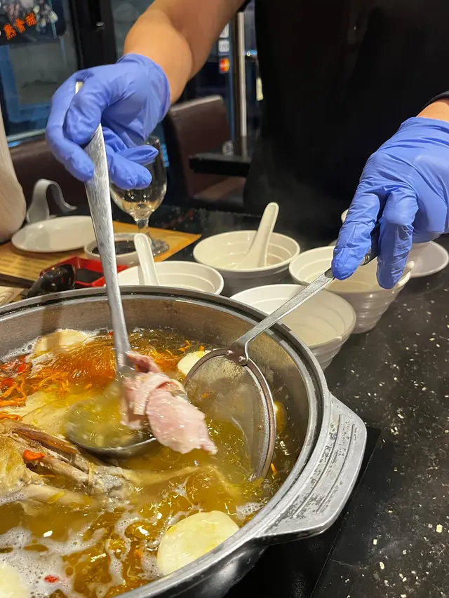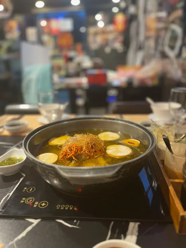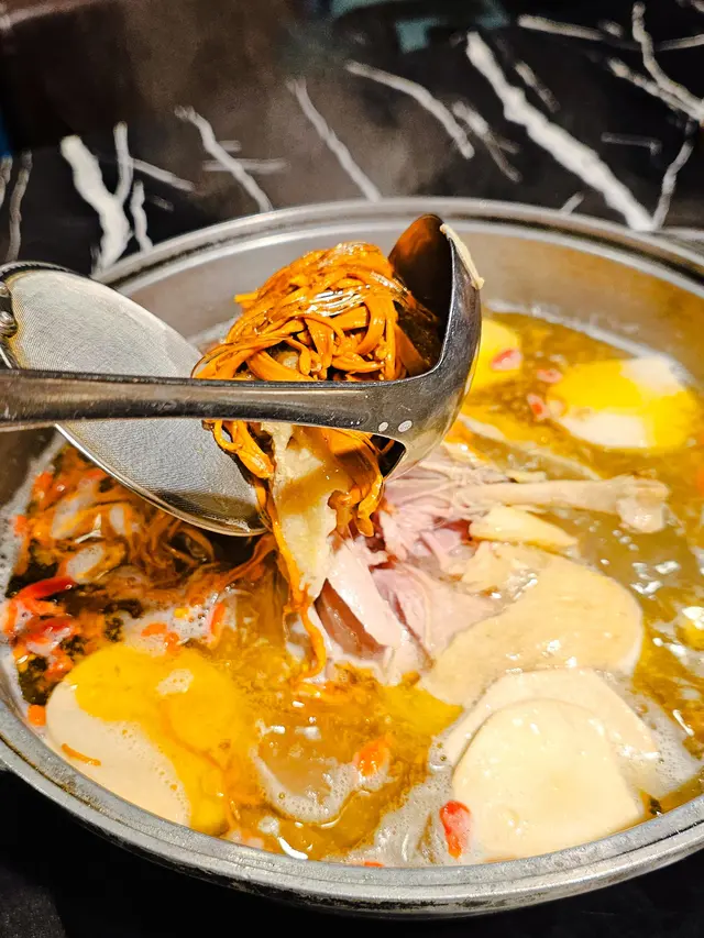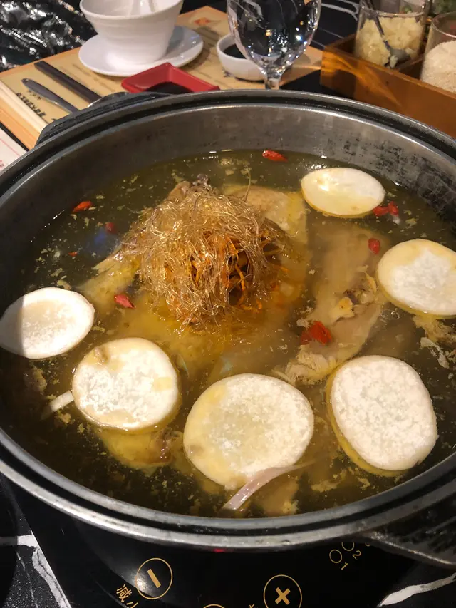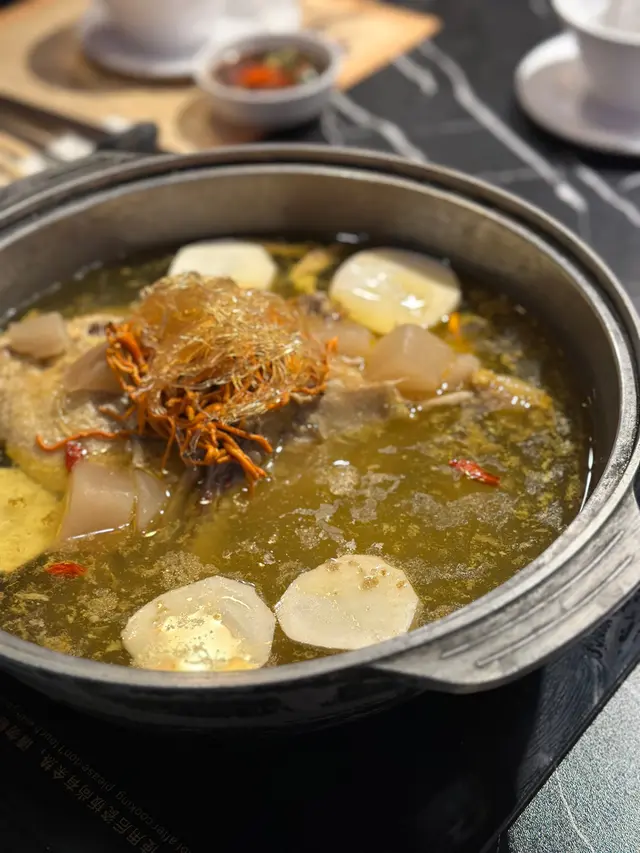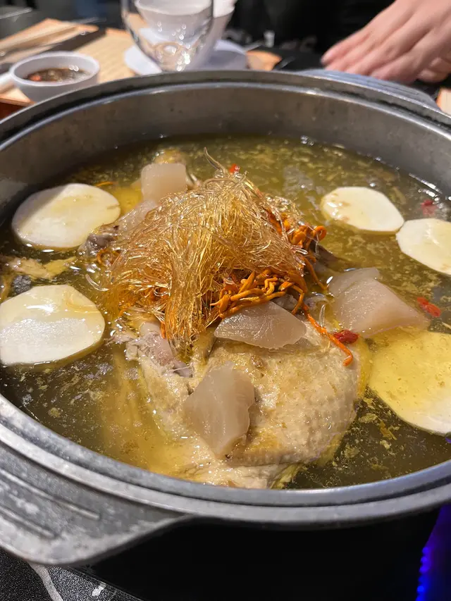 😋一到冬天就手腳冰冷,最啱食養生火鍋補一補!🔥金撈富貴老鴨湯係呢間餐廳嘅招牌菜,老火湯底濃郁甘香,鴨肉燉得很鬆軟,加埋蟲草花、枸杞、素翅大量材料,打邊爐前飲一碗,十分暖心滋補!🐟石蚌活魚刺身,薄薄一片晶瑩剔透,非常爽口鮮味,魚油香味係口中散發!👍🏻火鍋食材都好新鮮,安格斯牛頸脊軟嫩好食,岩手縣白金豚肉係必點之選,肉質細嫩無渣,富肉香而不羶!🧡第一次食咁巨型既竹笙王,吸滿湯汁後酸甜爽脆;鵝腸頭都唔錯,爽口唔肥膩!金羅漢果雪梨茶清熱下火,自家製所以唔會太甜,同樣好推介!✨金撈富貴老鴨湯 ($238)✨活魚刺身($480)✨安格斯牛頸脊($238)✨岩手縣白金豚肉 ($169)✨乾竹笙($89)✨鵝腸頭 ($98)✨皇帝菜 ($52)✨金羅漢果雪梨茶($59)…查看更多