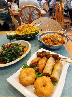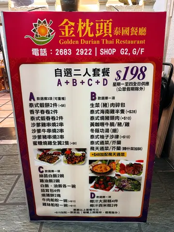 因为朋友话想揾间性价比高既餐厅食正宗泰菜,于是我就紧系介绍我嘅泰菜饭堂-金枕头泰国餐厅。重点系星期一至五免加一,依家最抵食系佢既二人餐:$198就有三款小食、两款主菜同一款甜品,份量同组合够晒平衡,同埋饮品可以+$15追加,真系好抵。.讲下二人餐既玩法:佢系分成a+b+c+d四项,a项可以拣3款小食,b、c、d每项各拣1样,最后总共有6款野——有主食、有小食、又有甜品,样样都有,份量又够两个人share,饮品只系+ $15就有,对住想悭钱又想食齐既朋友黎讲真系岩晒。.香芋春卷 + 蜜糖烧鸡翼(加$6)香芋春卷用料吾手软,外皮炸到金黄松脆,每咬一啖都会听到碎裂声同芋香慢慢散出。蜜糖烧鸡翼加$6,但绝对值得——表面有焦糖化既黏亮蜜汁,烧得微焦带香,外皮脆而带黏滑,入面鸡肉仲保持嫩汁,甜中带咸,好惹味。.泰式炒通菜(B项)呢道份量好大,通菜炒得保持爽脆,茎位仍有弹性,蒜香同少许鱼露既鲜味撑起全碟,油份控制得好,入口有镬气但吾油腻,配饭或者同其他菜share都好夹.蒜蓉包(C项):佢地用既系法包,外皮烤到微脆,牛油同蒜蓉渗入面包中,咬落去有牛油既香同蒜蓉既呛鼻香,边位微脆既口感同中心既柔软形成对比.椰汁西米糕(超推荐)呢个真系令我惊喜,椰汁味系我食过最浓郁既一个,西米粒煮到透明又有弹性,入口带微微QQ既咬口,整体质感滑而吾烂,椰奶既香甜厚实但吾腻,食完好满足。.泰式奶茶 +$15:系大大杯,奶香丰富同泰国街边既奶茶味好接近,甜度偏中高但香味足,冻饮冰度够,夏天饮特别醒神。.泰式珍多冰 +$15绿色果条带有淡淡班兰香,口感滑又带少少弹性,配上椰奶同红糖浆既厚甜,冰碎令整体好清爽,甜味系层次分明既天然糖香,系夏天解渴又有口感既选择。.泰式肉碎炒饭(鸡) $65最钟意既系可以拣鸡肉!鸡肉碎份量足,混合左细碎豆角既爽脆,香叶撕碎散出清新柑橘香,蛋花均匀包裹每粒饭,镬气够,米粒有微微焦边既香脆感,整体吾油腻而且好惹味.椰皇三重奏 $45以真椰皇做造型,好上相,分三层既口感—上层系滑溜既椰奶冻,中间系较弹既椰汁冻,面层再有另一种口感同小碎脆点缀,椰香十足,入口香滑又有口感变化,当作ending好清新又满足。…查看更多