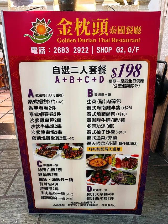 因為朋友話想搵間性價比高既餐廳食正宗泰菜,於是我就緊係介紹我嘅泰菜飯堂-金枕頭泰國餐廳。重點係星期一至五免加一,依家最抵食係佢既二人餐:$198就有三款小食、兩款主菜同一款甜品,份量同組合夠晒平衡,同埋飲品可以+$15追加,真係好抵。.講下二人餐既玩法:佢係分成a+b+c+d四項,a項可以揀3款小食,b、c、d每項各揀1樣,最後總共有6款野——有主食、有小食、又有甜品,樣樣都有,份量又夠兩個人share,飲品只係+ $15就有,對住想慳錢又想食齊既朋友黎講真係岩晒。.香芋春卷 + 蜜糖燒雞翼(加$6)香芋春卷用料吾手軟,外皮炸到金黃鬆脆,每咬一啖都會聽到碎裂聲同芋香慢慢散出。蜜糖燒雞翼加$6,但絕對值得——表面有焦糖化既黏亮蜜汁,燒得微焦帶香,外皮脆而帶黏滑,入面雞肉仲保持嫩汁,甜中帶鹹,好惹味。.泰式炒通菜(B項)呢道份量好大,通菜炒得保持爽脆,莖位仍有彈性,蒜香同少許魚露既鮮味撐起全碟,油份控制得好,入口有鑊氣但吾油膩,配飯或者同其他菜share都好夾.蒜蓉包(C項):佢地用既係法包,外皮烤到微脆,牛油同蒜蓉滲入麵包中,咬落去有牛油既香同蒜蓉既嗆鼻香,邊位微脆既口感同中心既柔軟形成對比.椰汁西米糕(超推薦)呢個真係令我驚喜,椰汁味係我食過最濃郁既一個,西米粒煮到透明又有彈性,入口帶微微QQ既咬口,整體質感滑而吾爛,椰奶既香甜厚實但吾膩,食完好滿足。.泰式奶茶 +$15:係大大杯,奶香豐富同泰國街邊既奶茶味好接近,甜度偏中高但香味足,凍飲冰度夠,夏天飲特別醒神。.泰式珍多冰 +$15綠色果條帶有淡淡班蘭香,口感滑又帶少少彈性,配上椰奶同紅糖漿既厚甜,冰碎令整體好清爽,甜味係層次分明既天然糖香,係夏天解渴又有口感既選擇。.泰式肉碎炒飯(雞) $65最鐘意既係可以揀雞肉!雞肉碎份量足,混合左細碎豆角既爽脆,香葉撕碎散出清新柑橘香,蛋花均勻包裹每粒飯,鑊氣夠,米粒有微微焦邊既香脆感,整體吾油膩而且好惹味.椰皇三重奏 $45以真椰皇做造型,好上相,分三層既口感—上層係滑溜既椰奶凍,中間係較彈既椰汁凍,面層再有另一種口感同小碎脆點綴,椰香十足,入口香滑又有口感變化,當作ending好清新又滿足。…查看更多