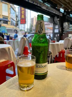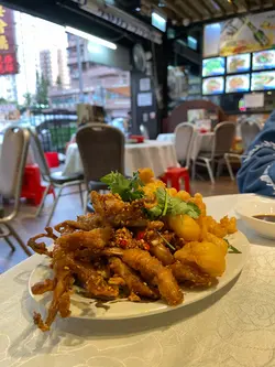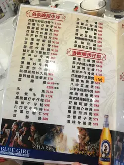 金沙角?在元朗居然有金沙角,我呢个沙田人帮衬咗金沙角超过20年,呢间就梗系要会一会佢,希望揾得番𠮶种味道。佢哋真系小厨素质,并没有大排挡嘅镬气,要有镬气烦请稍移玉步到后街就能解决镬气呢个问题。今日叫咗炖汤一盅,几好味有好似无味精,唔错。烧乳鸽就比较普通,皮唔脆,肉亦鞋。椒丝腐乳通菜,太湿啦,就好似汤浸咁。椒盐鲜鱿拼鸭舌,鲜鱿正常而鸭舌炸过头偏硬。另外再加多支啤酒,全单360(人均180)就因为「金沙角」呢个招牌入去帮衬,而若果用喺沙角金沙角嘅水准来说,真系不值一提。