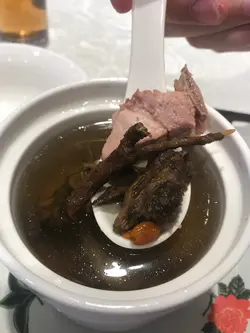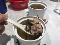 疫情期间,因有限制令,我们5人,只能分成两枱。正因为分成两枱,所以$10的特价小菜,我们可以点两碟。我们点了梅菜蒸肉饼和蒜蓉蒸胜瓜,虽然$10,但份量不少,非常超值。每人也送上炖汤一盅,这个则比较清淡,喝了两口,便没有再喝下去,免费的东西,也是差不多鱼翅捞饭,只售$98,但欠缺了鱼翅汤的味道,一分钱 一分货,这个也是理解兼明白。其他小菜也是乎合水准,份量充足,价格合理,在元朗宵夜的好选择当晚也有不少客人,所以有点气氛,因为疫情期间,很多餐厅非常宁静,欠缺了外出用膳的气氛
