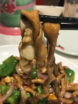 这间位于元朗市中心的餐厅,主要以中式小菜及火锅为主,而且有很多不同海鲜供应,食物都有镬气。一坐低店员会帮忙量体温,又提供酒精搓手液消毒,防疫功夫做足。另外还送上一人一盅的鸡骨草炖排骨,味道清甜。西兰花炒鲜鱿鲜鱿是新鲜货,入口爽弹带鲜,配上虾酱更能提鲜,西兰花翠绿爽脆。豉椒炒鹅肠鹅肠唔会太肥,中间的油脂大部份都已去掉,入口爽脆,旁边配上三色椒令色泽鲜艳。风沙茄子茄子酿了些似是蟹柳,一样上了炸浆去炸,炸浆很落又脆,又唔会油淋淋,做得不错。