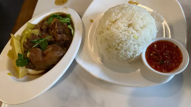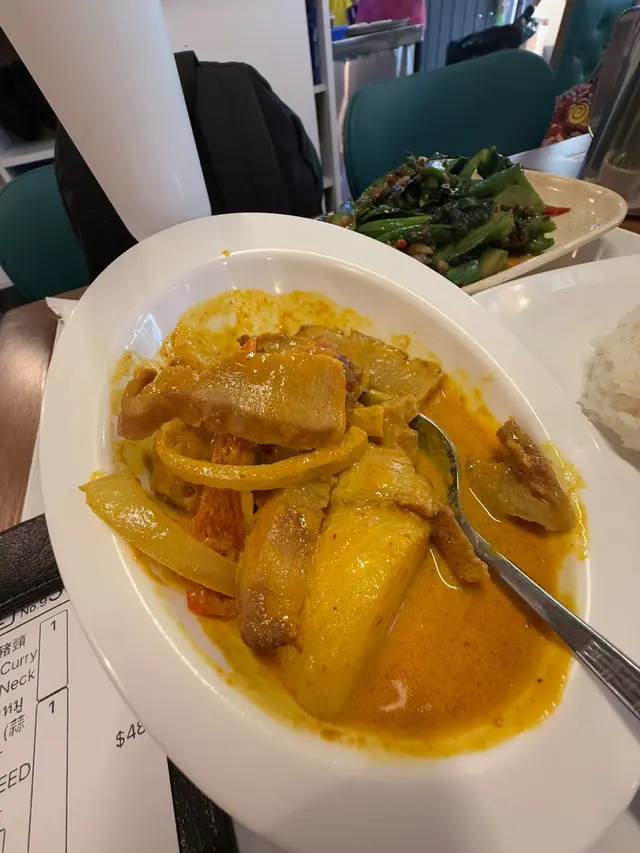 @金泰棧今日喺屯門搵食,剛剛行到呢個小商場,聽聞呢間泰國嘢幾好評價,就即管試試,叫咗兩份午市套餐✏️豬手飯豬手份量都幾多,夠入味,不過肉有啲鞋,還有啲好多伴菜✏️豬扒飯豬扒配上蔥油,入味夠淋,配上特製醬汁,特别開胃,吾錯套餐包括餐湯,問左職員係用雞殼煲的,不過太重胡椒味,我覺得太鹹有啲確喉。餐茶蜂蜜薑茶(不用加$),重薑味,飲完喉嚨好舒服,超正咖啡就ー般總結呢間餐廳性價比高,份量多,味道都算吾錯,以呢個價錢來講好合理,侍應服務友善…查看更多