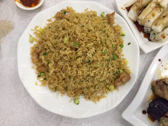 今日入咗屯門探親戚 去咗佢屋企樓下嘅酒樓飲茶🥢 入面有好多枱 星期日一點幾都唔駛等位👍🏻 見價錢幾平 所以四個人都嗌咗好多點心 同一碟炒飯😂我地嗌咗椒鹽魷魚鬚 椒鹽腰果豆腐 魚茸煎虎皮椒 香煎蝦米腸 兩份孖寶 有金港燒賣王 同鮮竹牛肉球 另一份孖寶有時菜鯪魚球 同魚茸煎茄子 最後仲有一碟咸魚雞粒炒飯🙊 上菜速度唔算快咸魚雞粒炒飯幾好食 又幾足料⭐️椒鹽魷魚鬚 冇乜魷魚嘅鮮味 但調味料好惹味🙂椒鹽腰果豆腐 豆腐外層嘅炸粉唔厚 所以唔係好脆 但豆腐好滑 整體都好食😗魚茸煎虎皮椒 虎皮椒唔辣 都幾多魚茸香煎蝦米腸 煎得唔夠乾身 有啲似蒸腸 蝦米有啲腥 🤧金港燒賣王 幾好食 相對其他酒樓佢算幾平🤤鮮竹牛肉球就好一般 牛肉似落得太多鬆肉粉時菜鯪魚球 都幾腥 又偏向多骨 但都幾大件魚茸煎茄子 上碟時 有三件嘅 但上枱熱辣辣 所以比佢地夾咗件喇🤭 都幾大件價錢幾平嘅 但味道唔算太好 不過不失啦😬 食滿$150有得抽獎一次 獎品係一款晚飯小菜 咁樣吸引客人 都幾特別嘅…查看更多