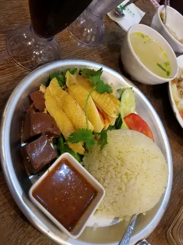 好少会落太子食lunch,原来太子呢边花园街有好多食肆,同个同事行咗阵,有潮州菜、越南菜、泰国菜、台湾菜、西餐、茶餐厅、糖水......,结果决定呢间泰国餐厅。因为早唔使等位,店内位置唔算多,格局有啲似茶餐厅,午餐时段有套餐,算抵食。叫咗两个餐,加$12有特饮。泰式湿炒猪肉河,呢度嘅河粉好得意,好大块,唔系一条条,个汁好好味,炒得好香,猪肉入味够淋,仲有好多蔬菜。海南鸡饭,配香口油饭,有碗冬瓜粒汤, 海南鸡好滑,除咗鸡之外有几块猪红。特饮系青柠七喜同青柠乐,酸酸地好适合呢个天气,消暑解渴。…查看更多