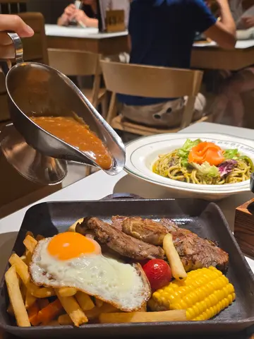 【金牌餐厅🎖️—人均$100怀旧铁板set|$30粒粒西多士🥩】家父最爱锯扒,前排捐窿捐罅揾到九龙湾呢间怀旧冰室—金牌餐厅🤩✨只需人均$100头就食到怀旧铁板set🤩❣️晚市仲食到粒粒西多士😋💞餐厅嘅装修以墨绿色瓷砖为主调,虽然主打怀旧,但环境一样干净企理!⭐️仲有至抵优惠⁉️教你获取免费饮品🥤❗️1️⃣大众点评App搜索”金牌‘’ (九龙湾)2️⃣点击收藏+打卡(收藏打卡店舖+3张本店产品图片+30字以上评论)🔶特选晚餐—铁板金牌羊架配意粉⭐️ $168➡️晚餐头盘:烟三文鱼沙律烟三文鱼好鲜嫩,带有淡淡的烟熏味,搭配新鲜的蔬菜,清爽可口,做前菜啱啱好!🥗➡️餐汤、蒜蓉包➡️主食羊架(配意粉)羊架外焦内嫩,肉质鲜美,一啲都唔膻!冰室嚟讲价钱相宜,亦有水准!🥩➡️餐饮🔷原只金牌烤春鸡(铁板) $158➡️餐汤、蒜蓉包➡️主食春鸡(配薯条)原只春鸡份量足料,外皮酥脆,肉质鲜嫩多汁,薯条亦外脆内软!相当抵食!➡️餐饮—黄牛(忌廉+雪糕) +$16⭐️好怀旧嘅特色饮品!我都系第一次试😍~饮品结合了浓厚的忌廉和冰凉的雪糕。忌廉香浓丝滑,雪糕十分清凉,饮落去甜而不腻,好过瘾!😆🔶粒粒金砖西多士(配炼奶)⭐️ $30十分推荐!西多士香脆内软,夹层搽有花生酱🥜,搭配浓郁炼奶,甜而不腻😋📍:金牌 Gold Label Cafe & Restaurant 牛头角道77号淘大商场3期地下G266-270号舖#淘大#淘大美食#九龙湾#九龙湾美食#牛头角#牛头角美食#茶餐厅#茶记#新式茶餐厅#冰室#怀旧冰室#铁板#铁板餐#香港#香港美食 #hongkongfood…查看更多