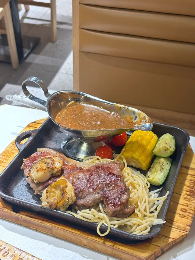 .好鍾意港式濃厚嘅茶餐廳🍴金牌果然冇改錯🏆 好多食物都係王牌.🌟 鐵板瀑布芝士漢堡餐 $98 🧀🍔呢個真係要大推 超級特別 視覺效果滿分💯芝士如瀑布甘 份量超多 🧀🧀🧀漢堡🍔肉汁豐富 搭配鐵板 滋味濃郁 餐廳好貼心已經將漢堡包切開咗一半 🍔鐵板開住火 保證漢堡包同芝士都熱辣辣 ♨️食完仲可以將薯條點芝士🫕🍟邪惡非常😈但真好正🥰.🌟 鐵板鴛鴦扒加法蘭克福腸🥩🌭 $88份量十足 有大大塊雞扒同豬扒🐔🐽性價比高 一次過滿足食肉獸的願望😈腸仔煎得香口 黑椒汁夠哂惹味伴隨住鐵板滋滋聲🔉💥真心好正.🌟 蜜釀🍯鎮江骨 $68鎮江醋的酸甜與蜜糖的溫潤完美結合💯排骨燜得軟腍入味 非常開胃的小菜估唔到茶記可以將小菜都做得咁出色😱😱.🌟 蘑菇忌廉汁海鮮焗飯🍚 $65我真心鍾意呢個💛焗飯夠熱辣♨️ 忌廉汁香滑濃厚海鮮料足 有蝦🦐有帶子有魷魚🦑有🍄🟫飯粒吸滿汁醬 口感豐富有層次.🌟 鹹牛肉牛乳炒蛋潛艇 🥩 🥖$36鹹牛肉鹹香配搭嫩滑的牛乳炒蛋🍳👏🏿👏🏿.🌟 粒粒金磚西多士 $30外脆內軟 一口一粒剛剛好煉奶與牛油份量恰到好處不會過甜 邪惡但滿足😈🥰.一間高質抵食的港式西餐茶記菜式有創意且份量慷慨🔆🔆由主餐到小食都無失望🧡難怪幾時都咁多人👯♀️👯♀️一定會encore👏🏿‼️.@goldlabelrestaurant📍九龍灣牛頭角道77號淘大商場3期地下G266-270號舖…查看更多