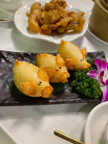 今晚跟朋友去呢间新开嘅粤菜馆,一定要同大家开心分享呢度,中环嘅超级正嘅粤菜馆!呢个厨艺、呢个环境、呢个菜式,真系超级正!👏即制手工点心• 芹香龙虾金鱼饺:呢个饺子创意十足啦,长得好似金鱼噉,仲贴咗金箔,咬埋一口落去,龙虾肉鲜嫩多汁,芹菜嘅清香即刻喺嘴里爆开,真系绝咗!👍• 南翔小龙包:皮薄到吹弹可破,汤汁全部用纯鸡加鸡脚熬嘅,一点味精鸡精都冇加,喝落去真系一个鲜字!一个接一个,完全停唔低手!👍• 黑毛猪咸水角:造型萌翻晒,猪仔加上猪尾巴,超可爱!刚出炉嘅咸水角,皮脆软糯,香口而不油腻,吃埋一口超满足!👍• 肉骨茶鲜竹卷:肉骨茶煲咗最少5个钟,真材实料,配上鲜竹卷,呢个创意点心,味道绝咗!👍• 大漠羊肉包:用羊髀肉做馅,一点羊臊味都冇,包皮酥香不油,呢种羊肉馅嘅点心真系好少见,一定要试吓!👍🌺 滋补靓汤杏汁花胶炖乌鸡汤:鲜磨杏汁配上超大块嘅花胶,炖出嚟嘅乌鸡汤滋阴养颜!🌺 主菜• 香酥榄菜爆炒龙虾:呢个龙虾太正嘞!肉嫩Q弹,完全唔油腻,唔辣,爆炒过嘅榄菜香蒜都超香,配埋一碗白粥,绝配!👍• XO酱煎肠粉伴海虾煲:砂锅底嘅手拉肠粉,吸收咗XO酱爆炒鲜海虾嘅鲜味,再加上少少蕉,呢个搭配太正嘞!😉• 鲍鱼酿烧鹅:呢道菜系经典中嘅经典!南非五头鲍鱼用鲜鸡同埋火腿扣至七、八成软身入味,客人嚟咗之后,再将已扣过嘅鲍鱼酿入烧鹅内,现场烧大约40-45分钟。出炉之后嘅鲍鱼满系烧鹅嘅汁香,烧鹅皮脆肉嫩,一口咬落去,满足感爆棚!👍👍👍• 香葱腐竹捞芥兰:用最嫩嘅中段芥兰配上香葱同埋嫩滑嘅腐竹,解腻又清新,平衡咗前面几道丰盛主菜嘅味蕾!👍🌺 甜品• 状元熊猫杨枝甘露:造型超萌,味道超甜,食埋一口心情都变好喇!😊• 金伯爵开心果布甸:布甸软糯,开心果嘅香味浓郁,甜而不腻,绝咗!👍呢间粤菜馆嘅包厢超有格调,仲有卡拉OK,适合各种宴会!总厨系香港富豪嘅前家厨,厨艺真系一绝!一定要去试吓啰😘