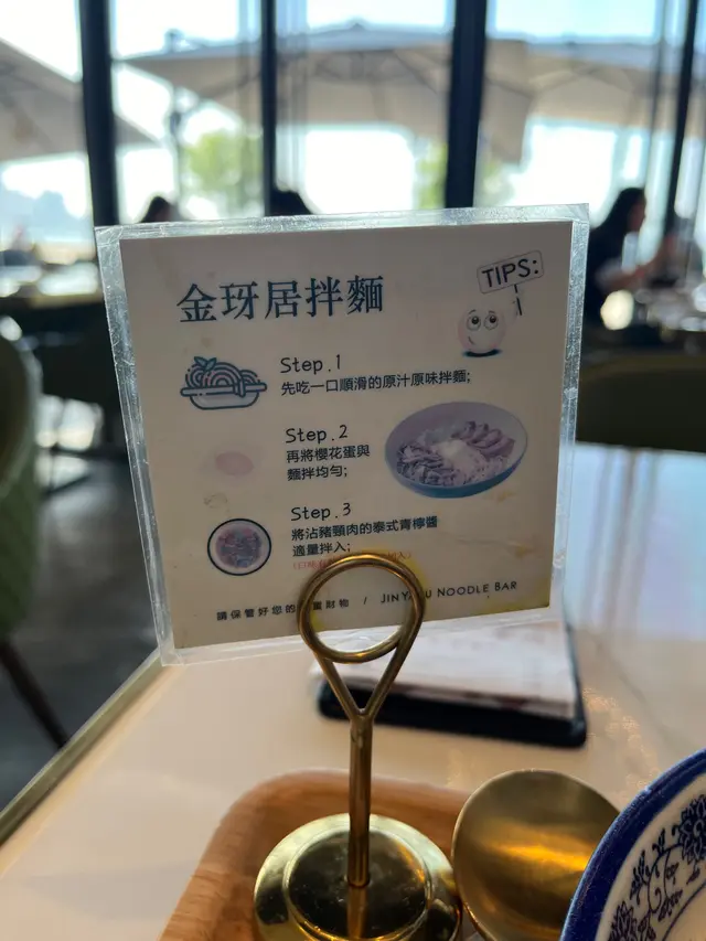 同女朋友叫左佢地招牌既金芽居拌麵👍🏻,雞湯麵加個小食黃金泡菜,大慨10分鐘都上晒台比我地。果然係招牌拌麵,拌麵嘅口感個人黎講岩晒我口味,最特別系拌麵嘅蘑菇好入味雞湯麵價錢尚可,樓面員工解釋佢地既雞湯冇落任何調味料,個麵都係手工麵,令我好好奇去試下,雞湯堅👍🏻手工麵系唔同啲好食,連埋海景低食👍🏻!最令我驚艷既估唔到系個小食泡菜,佢同出邊韓國傳統泡菜唔同,但味道真係好好食👍🏻Btw員工有耐性解釋餐牌比我聽👍🏻,服務態度唔錯,環境唔洗講西九故宮海旁!一流👍🏻最衰系天氣太熱唔想坐出面,唔系對住個海食野都真系幾寫意👍🏻👍🏻查看更多