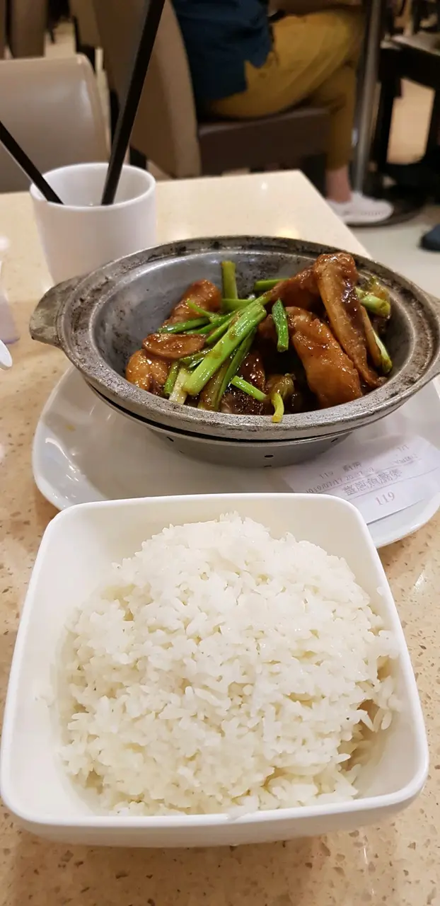 這間餐廳幫襯多次,每次都係光顧晚餐,餐牌上有3款2人餐,薑蔥霸王雞/清蒸蒼魚(可轉豉汁)配一款小菜或者兩者都有+兩款小菜,每個套餐附送例湯&清湯時蔬,仲有野飲添。1. 薑蔥霸王雞(半隻):連雞胸都好滑嫩幾好食,個豉油汁仲可以撈飯。2. 枝竹火腩煲:枝竹有8塊,火腩都有咁多,汁就稍濃,要送飯。3. 清湯時蔬:通常都係菜心,遇過一次係唐生菜。4. 餐湯:有2款...中(老火湯) / 西(羅宋湯含有牛肉)送熱飲,凍飲要加錢。服務生主要為老人家,感覺有點似銀杏館,服務態度很好,只收現金,不收任何電子支付。…查看更多