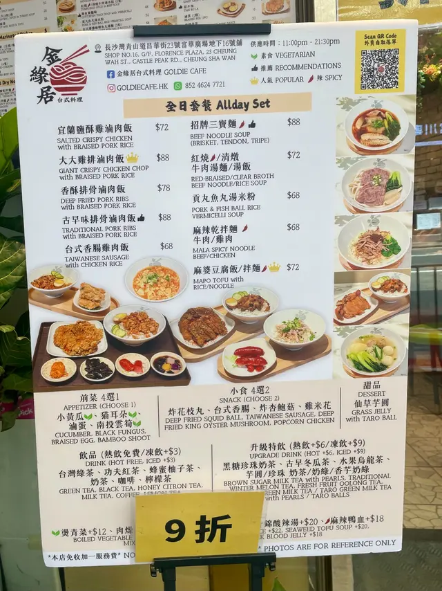 # 🍜【食評】長沙灣後街發現台式驚喜 — 金緣居 最近喺長沙灣行街無端端發現咗間新開嘅台式餐廳 **「金緣居」**,位於彰華街入面,有啲隱蔽,不過入到去即刻覺得幾舒服。室內裝修清新,有花花吊飾、磚牆同木枱,滿滿台式小清新氣氛,好似真係去咗台灣咁。 ---## 🍱 大大份雞扒滷肉飯 — $88 呢個套餐真係震撼我,同老婆一見個雞扒上枱即刻「嘩」一聲,超級大塊,差唔多佔晒半個碟位! 外皮炸得金黃香脆,內裏雞肉依然嫩滑多汁,咬落去有聲「咔嚓」咁,肉味又香濃,完全唔乾柴。滷肉飯亦十分出色,滷汁鹹香入味,肥瘦比例剛好,白飯都吸滿咗滷汁。 飯量仲可以揀多飯Option,啱晒男仔或者大食人士。 最欣賞係佢個套餐仲附送兩款小食菜(鹹鴨蛋同炸小丸子)再加一碗甜品,真係10分有誠意。 ---## 🍜 台式三寶麵 — $88 老婆嗌咗台式三寶麵,入面有牛筋、牛腩、牛肚,全部炆得好腍,完全唔韌。湯底紅通通但唔會太辣,係嗰種帶微辣香氣、略帶椒香嘅紅燒湯。 每啖湯都飲得出用心熬製,唔係嗰啲味精湯底,牛香滲晒出嚟,好地道台灣味。 份量都夠晒誠意,一碗麵都幾大碗,加埋配菜竹筍同炸魚蛋仔,真係食飽晒。 ---## 🥣 綜合酸辣湯(加$20) 原本諗住只係配角,點知又係驚喜位! 酸味開胃,胡椒香明顯,飲落暖笠笠。唔算好辣,但台味十足。入面料都幾多,有豆腐絲、木耳、肉絲同金菇,一碗賺番哂。 ---## 🧋 飲品:珍珠奶茶 + 芋頭奶綠 呢兩杯飲品真係飲出童年回憶嗰種味。 **珍珠奶茶** 奶味厚實但唔膩,珍珠煙韌有嚼勁。 **芋頭奶綠** 芋頭味天然香滑,綠茶底平衡到整體甜度,飲落去唔死甜,好順喉。 兩杯都明顯用料唔錯,有種用心感覺。 ---## ☕ 整體印象 雖然餐廳位置唔算方便,坐落喺長沙灣比較靜嘅小街,但店入面裝修真心舒服,環境乾淨、有氣氛,食物質素高、份量足。 佢哋啱啱新開仲有優惠活動,飲品買一送一,抵上加抵。 ---## 🌟 總結 | 項目 | 評分(滿分10分) ||------|----------------|| 食物味道 | 9.2 || 份量誠意 | 9.5 || 環境氣氛 | 8.8 || 飲品水準 | 8.5 || 整體CP值 | 9 |💬 **總評:有誠意、有水準、性價比高。** 無論係炸雞控定滷肉飯迷,都一定要試試。 「金緣居」係嗰種行過唔起眼、但食完會記得嘅良心台式小店。 下次我一定會再嚟試佢哋嘅麻婆豆腐飯或者牛肉麵,再配返杯黑糖冬瓜茶~ 😋…Read More