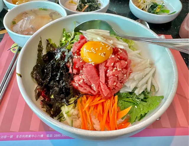 大滿足的生牛肉拌飯 FoodieBuddieHK等级32025-01-141K 浏览 关注 已幫襯了金羅寶好幾年,名字改過但質素不變。餐廳主打傳統的韓國料理,湯品和烤肉的調味和品質都很不錯。星期一至六午市有提供套餐,比散叫的價格要相宜得多,選項有幾十種:各種石鍋飯、湯類、湯麵、蓋飯和烤肉(午市套餐的烤肉會用鐵板上,餐廳已預先烤好;主餐牌的散叫烤肉則自己燒),我最常點的是紅燜牛筋骨煲、紹菜牛筋骨煲和生牛肉拌飯。敢吃生牛肉的話,金羅寶的生牛肉拌飯絕對是必點的菜式。雖然價錢比其他午餐的選項貴些,但生牛肉新鮮不在話下,份量更有如一塊厚厚的漢堡扒,滑溜無筋,也無多餘的脂肪。韓牛與和牛不同,和牛勝在脂肪溶點低,有入口即溶的牛油香,韓牛則是肉味更濃,肉鮮味甜。拌飯的生牛肉切成粗條,口感比一些餐廳「碎濕濕」的切法要好食得多。肉已預先調了味,拌了魚露、生蒜、麻油/紫蘇油和糖,甜、香、鮮的比例恰到好處,不會搶過主角的鮮味之餘,還能吊出生牛肉本身的甘甜。得留意的是,這道菜有「最佳賞味時限」,它上枱時呈半冰凍狀,第一次吃可能不習慣,但這正正是它最好吃的狀態:半冰凍而粗條的生牛肉吃起來外軟內爽,入口即溶,牛肉的鮮甜味在口中化開來,滋味與一貫生牛肉他他那軟綿綿的質感相當不同。而且這溫度吃起來最清爽不膩,一但牛肉放久了,不但會出水,鮮甜味也大大減少,味道完全變了樣。拌飯的配菜也很精彩,水梨、紅蘿蔔、紫蘇葉、生菜、紅椰菜和紫菜切成細絲,紅的綠的紫的,賞心悅目之餘,口感和味道都更顯豐富。隨餐附上的小菜也不馬虎,兩人會有8小碟,不過得加錢才可續添;另外也推薦加點餐廳自家醃製的鮮泡菜,雖然不便宜(小份量是$50),但爽口香辣,外面較難吃到,味道很不錯。不過吃完之後,整天口中都留有生蒜的味道,而且畢竟生牛肉拌了不少紫蘇油,如果一個人獨享會有點膩,最好是和朋友分享。…查看更多以上食记乃用户个人意见 , 并不代表OpenRice之观点。赞好分享大滿足的生牛肉拌飯 金羅寶韓國料理 https://s.openrice.com/QrLT0HtjP00检举 张贴 评分4味道4环境3服务4卫生4抵食推介美食生牛肉拌飯用餐途径堂食