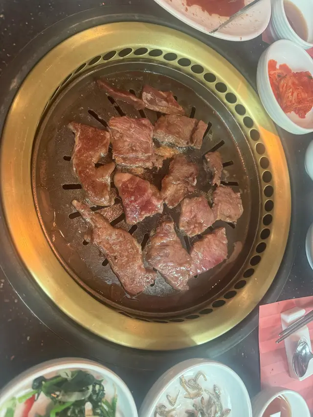 銅鑼灣穩陣韓燒之選 Christy Yiu等级12025-06-181K 浏览 关注 嗰晚同朋友行完銅鑼灣SOGO。行過見到呢間韓燒店,地方闊落、燈光溫暖,就推門入去碰下運氣。 前菜陣容完整,泡菜發酵得宜,酸甜平衡;醃蘿蔔清脆爽口,其餘小碟如涼拌菠菜等亦保持水準,雖非驚艷但勝在種類豐富。 主菜方面,厚切五花肉油脂分布均勻,烤至金黃後外脆內嫩,配搭生菜與韓式辣醬頗為對味。牛肋骨肉醃製入味,肉質鬆化,甜鹹調味稍重但尚可接受。燒鰻魚火候控制得當,魚皮香脆而肉質保持嫩滑,醬汁點綴得宜,是當晚較出色的一道。 環境整潔,抽風系統良好,用餐後衣物未有明顯油煙味。服務人員換烤盤及時,態度友善。價位處於銅鑼灣區合理範圍,適合三五知己小聚或家庭用餐。 整體而言,金羅寶提供穩打穩紮的韓式用餐體驗,食材質素與烹調技巧皆在水準之上,值得一試。 …查看更多以上食记乃用户个人意见 , 并不代表OpenRice之观点。赞好分享銅鑼灣穩陣韓燒之選 金羅寶韓國料理 https://s.openrice.com/QrLT0qkjS00检举 张贴 评分5味道5环境5服务5卫生5抵食推介美食五花豬腩肉用餐途径堂食