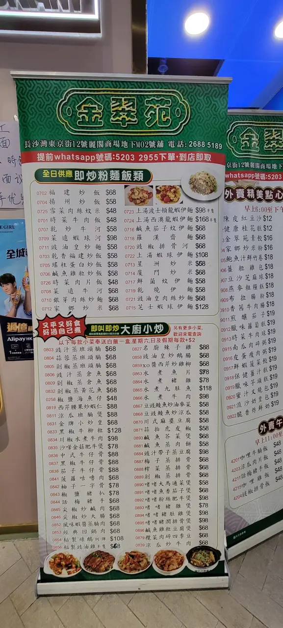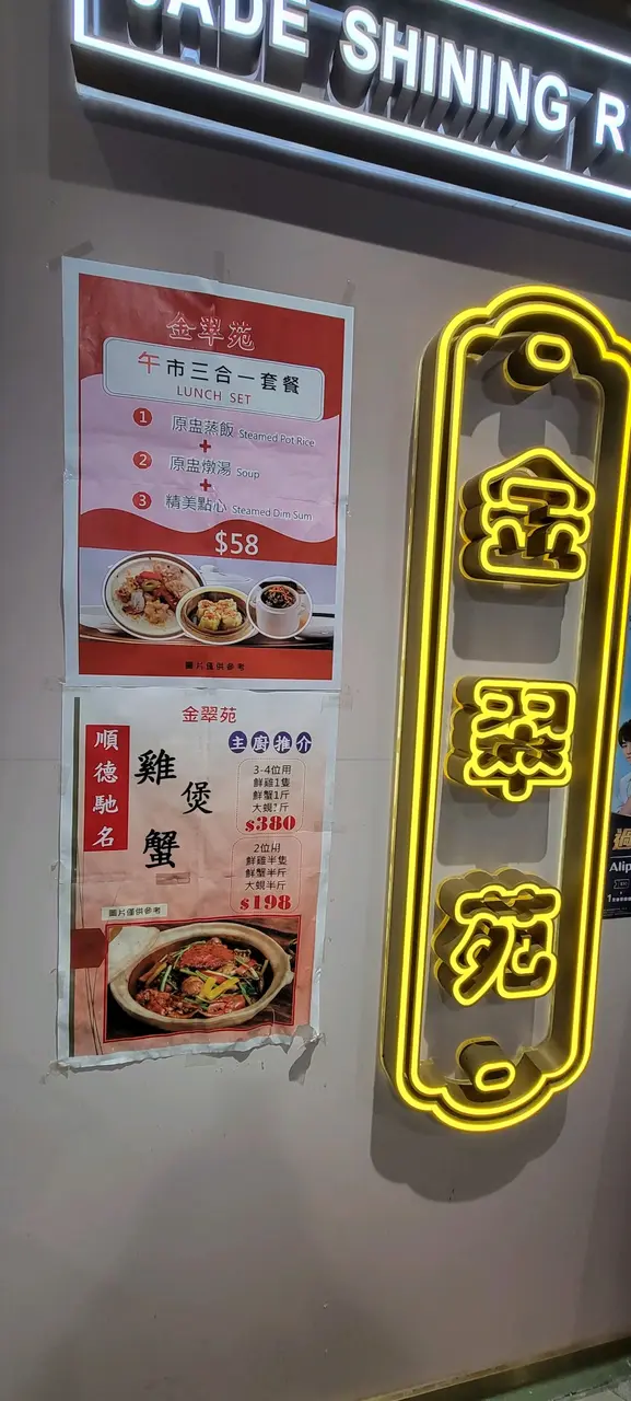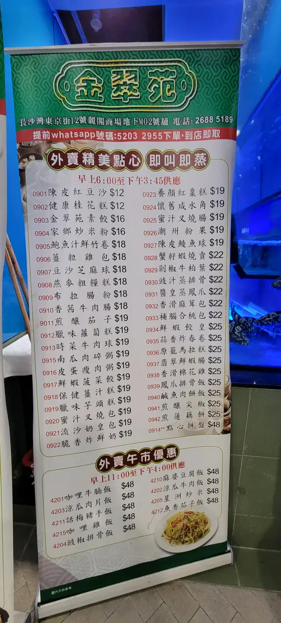 金翠苑 (长沙湾) 网址: https://s.openrice.com/QrLS0cECB00 地址: 香港長沙灣東京街12號麗閣商場地下M02號舖 电话: +852 26885189