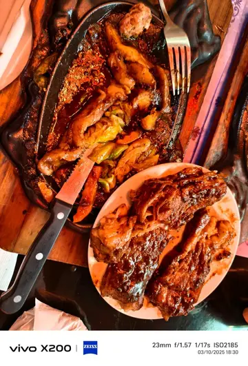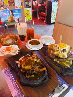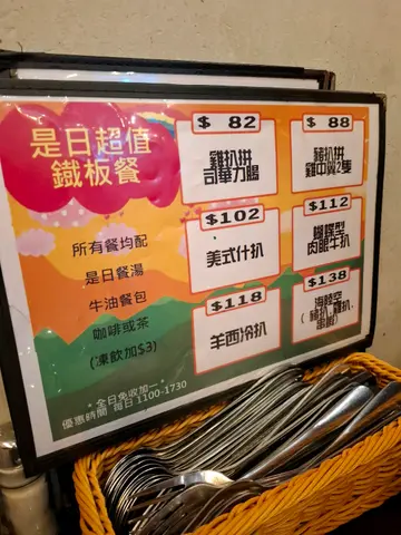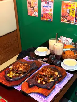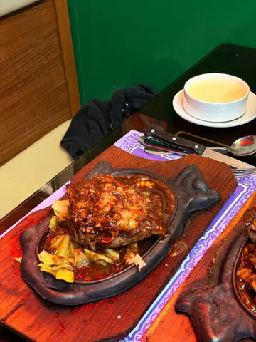 今晚想食西餐, 上openrice周围search下, 见到依度食评唔错, 环境装修几特别👍, 望下餐牌, 有d选择困难, 最后友人为我拣左羊膝腿🐏, 佢自己要晚餐~巨人什扒🐔🐮🐽🍳🥓餐, 要左二个忌廉汤, 隔一阵送来二个餐汤和餐包, 忌廉汤够晒cream👍味道唔错, 唔会一d味都无, 餐包暖暖地, 加牛油好食😃, 友人的晚餐包一个沙律, 都唔系少👍👍, 试左一口味道唔错, 再之后送来二个主角, 铁板上够晒仪式感🥳, 我哋加左2元再加d蒜蓉🧄, 之后店员拿左二兜汁问我哋要乜嘢, 我就拣左黑椒, 友人拣另外一款😋👍, 之后我切件羊膝肉, 非常淋😋, 不过系我自己唔系好识切🤣, 食一口, 超级好食💯唔会有羊so味, 食到入面肉汁都好juicy😍, 份量对我来讲都好足够, 不过我都好似有见到人加d小食, 或者饭同意粉, 之后店员送上二个啫喱, 依个就麻麻地, 太甜同希得滞😆, 再之后叫左冻0🍋茶走甜, 味道唔错, 饮落唔会苦, 有茶香味😘, 日后想再食扒, 我都会第一时间谂起依度, 够抵食价钱相宜店员服务有礼, 环境有怀旧风味, 值得再去😁🫶👍…查看更多