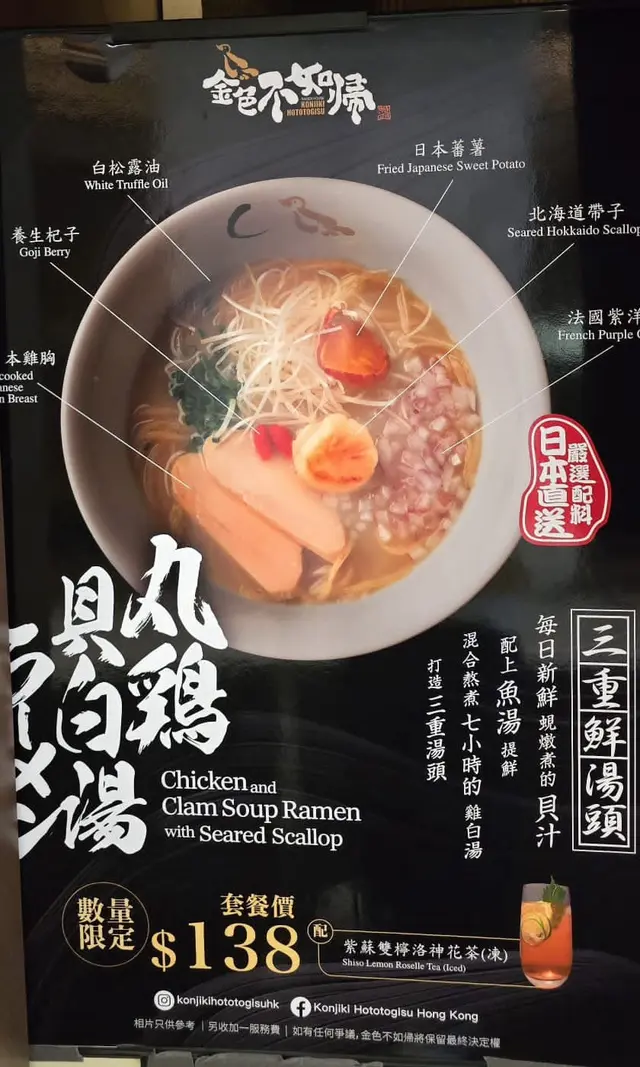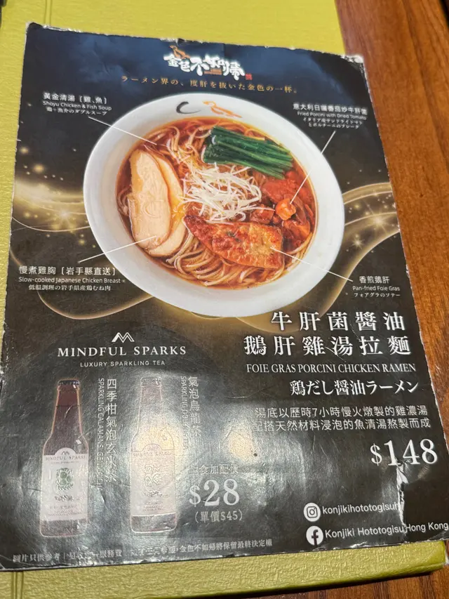 網上看到米芝蓮拉麵,加上openrice各同好鼎力按讚,不虞有詐,連忙從尖沙咀趕路至此。裝潢華麗,筷子木紋犀利,水些微有股鐵銹味,加強鐵質吸收。一切順利,直至一嘗貝味湯頭。那股鹹味,就像你搭天星小輪時海浪湧起,海水翻騰落下到你舌尖;或更單純,海灘上遇溺時被迫灌下的那口濃鹹水。進食期間更是懷疑自己味蕾出現問題,到單子來了,才知道眼晴也有問題了。二百八十多元,兩碗鹹海水,可能走漏眼,是「咪」芝連不是米芝連!有心人見字,請三思,一思荷包負荷,二思海洋鹹香,三思腎功能。…查看更多