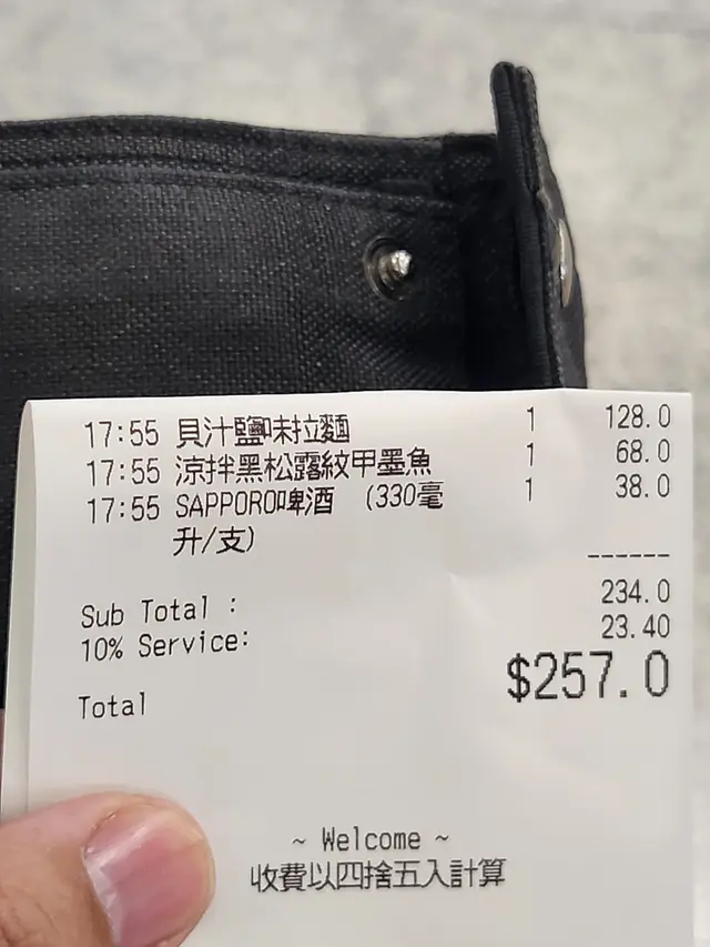 貝汁盬味拉麵+涼拌黑松露紋甲墨魚+Sapporo啤酒