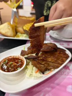 而家有左宋皇台站之后, 去九龙城真系方便左好多, 今晚想同朋友食下泰菜,行左几条街见到呢间, 写住超过30年老字号, 有两间铺头, 店员都系泰国人, 重点系不加一, 一于就同朋友试下先墙上面好多上菜都好吸引见到隔离枱叫脆皮猪手都好靓, 不过下次要多人小小先叫到而我地就叫左泰式烧牛肉见到有几枱客人都有叫呢个泰式烧牛肉我地一于跟!