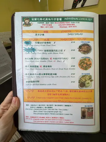 一踏入金兰花,空气中已经飘浮著泰式香料嘅诱惑。泰式烧鸡配咗一只金黄闪闪嘅太阳蛋,烧鸡香喷喷,肉嘅质感松软,啖啖肉真系食落有哂满足感,但个鸡皮烧到微微焦脆,呢下少少,就有啲干咗。太阳蛋流出既蛋黄,淋喺白饭上面,味道简直无得顶!猪肉炒金边粉嘅话,面条炒到又干爽又入味,真系炒功一流!猪肉腍滑,吸满咗豉油同芽菜嘅鲜美。每一啖都叹为观止,简直系平民美食之选。整体嚟讲,这家泰国餐厅提供嘅佳肴衬托出浓厚嘅泰式风情。食物嘅味道扎实,质素有保证,加上店家嘅服务,真系称心满意,真系要赞一赞!下次再嚟,钟意食辣嘅朋友们,记得唔好错过喇!🌶️👌🏻🥘#金兰花 #泰国美食 #烧鸡蛋白饭 #炒金边粉…查看更多
