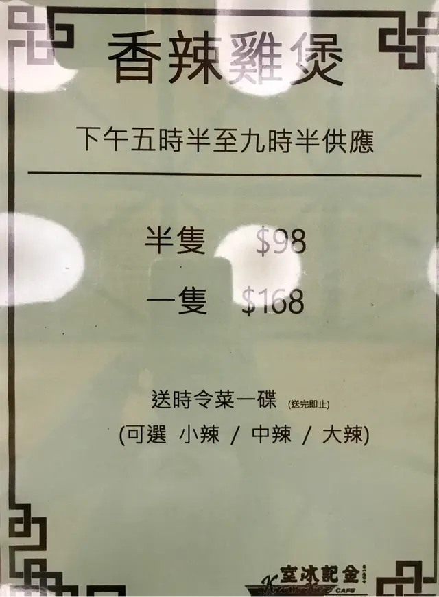 位於北角和富道既金記冰室以新光戲院作主題佈置,得意又富懷舊感今晚8點到達冰室,人流唔多, 約2,3枱客人同老公叫左兩個小菜晚餐平均每人約$8x跟餐中湯豆豉蒸桂花魚 $98 (跟餐湯,飯及餐飲)豆豉份量十足, 桂花魚細細條,但鮮味十足, 蒸得剛剛好, 夠嫰滑南乳齋菜煲 $68 (跟餐湯,飯及餐飲)內有南乳,菜, 茄子,秀珍菇,粉絲,腐竹南乳夠味而唔咸,每種材料都吸收晒南乳既味,好適合送飯 蛋白杏仁茶 跟餐加$8 本身對杏仁茶冇好感,今次就例外杏仁茶味唔太重,感覺多份奶味與蛋白一齊飲,味道更佳查看更多