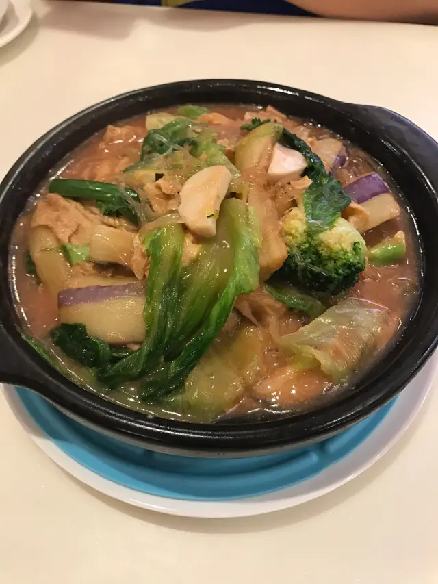 以前公司喺北角 大家想食啲家常餸菜 所以提議去左金記~一見到餐牌南乳粗齋煲馬上點了!!因為我實在太愛南乳煮齋!!要試吓佢水準上枱喇!!好夠熱!!上枱仲有吱吱聲!!咸味適中因爲好驚好易太多南乳會太咸材料十足Dry的種類好多 有菇 菜 瓜 粉絲 腐竹etc美中不足沒有「麵筋」類的齋第二個吸睛的是 籠仔荷葉蒸污糟雞好足料🤣 整個籠內雞全部都係雞 打開蓋時還真的有荷葉香味(糯米雞咁)蒸是一個比較健康的烹調方法應該不會太肥吧 而且雞肉蛋白質較多🤣雞上的虫草花 感覺令整個餸更為健康(不知道為什麼🤣)雞蒸得不老 肉質還是滑滑的原本看到它白曬曬以為會不夠味 但原來荷葉包裹著很多汁~+8 要左個蛋白杏仁茶冇令我失望!!唔太甜!淡淡的杏仁香味!還有大大舊蛋白!!查看更多