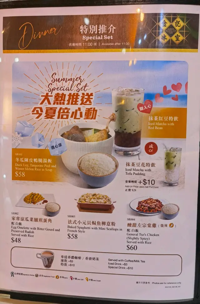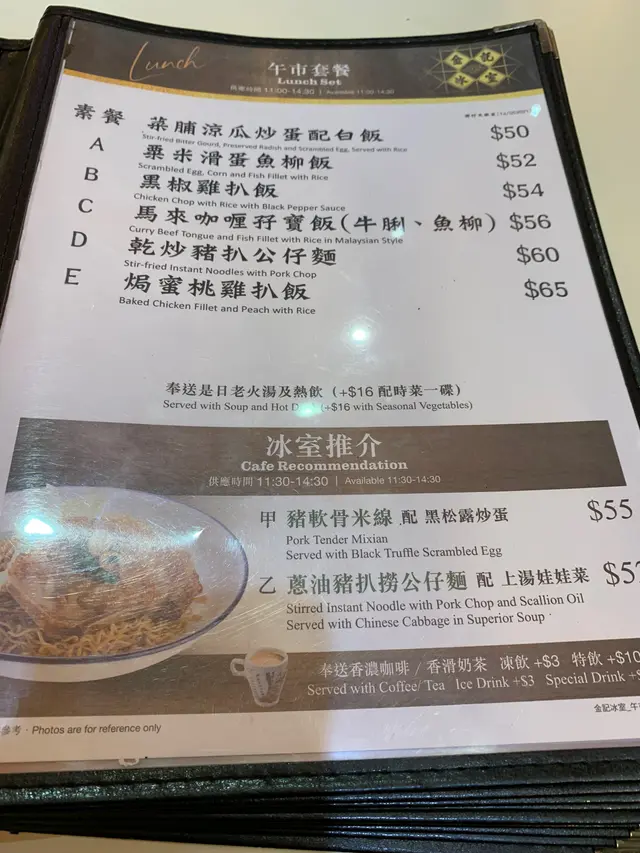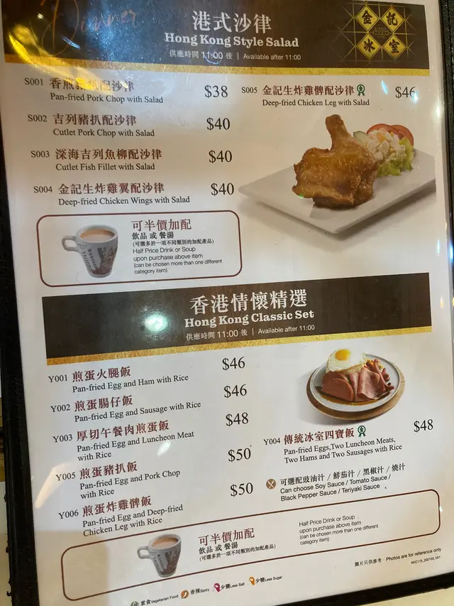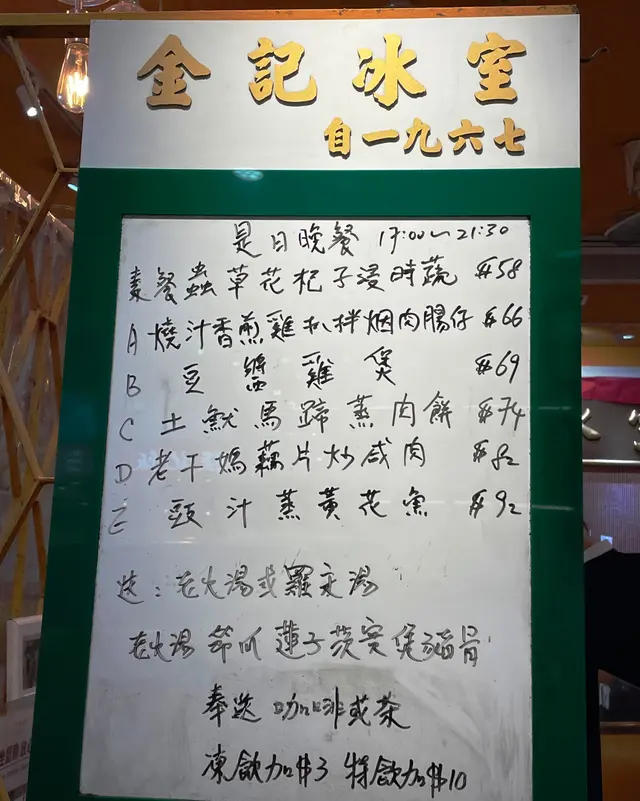 今日放工約了弟弟去了灣仔集成中心買玩具模型禮物, 走時剛下著毛毛雨, 於是決定在附近找間餐廳食晚飯, 附近有金記冰室, 不作他想, 立即入去揾位. 第一眼看見 "冷氣開放" , 好似時光倒流 50年. 再睇餐牌, 原來 金記冰室 始創於 1967 年.