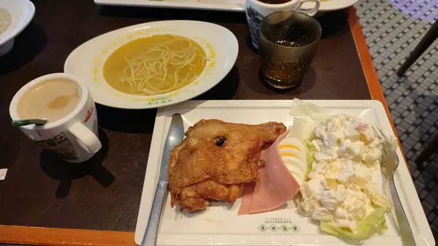 第一次光顧,同事推介必吃午餐就是:生炸雞肶麵/米粉/意粉餐。我選了湯意粉,可能是即叫即生炸的關係,要等約15分鐘才上桌,意想不到是雞肶全脆但不會乾柴柴,咬出肉汁味適中......薯仔沙律配塊火腿再加上一碟湯意粉及熱㗎啡,大男人也感滿足。查看更多