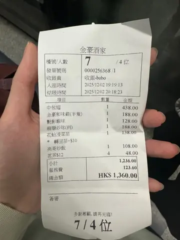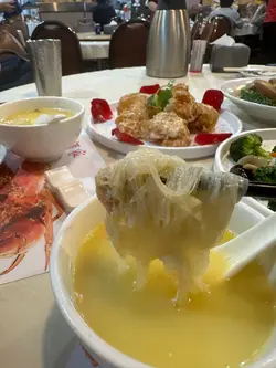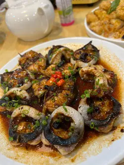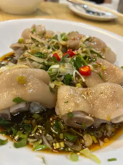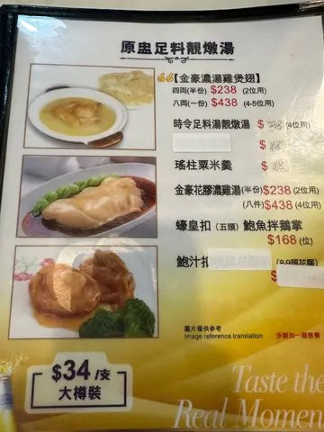 清蒸斑头腩原条斑头腩蒸到刚熟, 鱼肉鲜甜, 肉质嫩滑, 口感滑顺!鱼油丰富, 鲜味十足~~豉油皇中虾 $168用秘制豉油皇爆炒, 中虾炒到金黄~虾壳脆到可以连壳食, 虾肉爽弹鲜甜, 非常惹味!!!萝白清汤腩煲 $198牛腩炆到淋滑入味, 萝白煮到透明, 索晒汤汁精华~~汤底清澈清甜, 整体味道平衡, 唔会太油腻