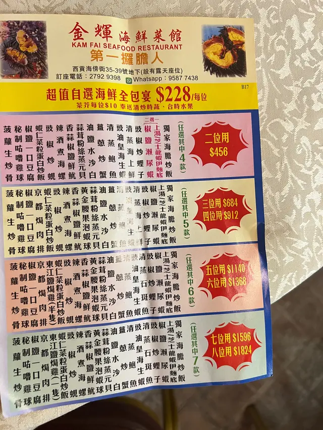 金輝海鮮菜館的霓虹燈招牌在夜色中格外醒目映照著碼頭邊停泊的漁船這家老字號海鮮酒家沒有精緻的裝潢卻憑藉現撈現煮的鮮活滋味成為本地人和遊客心中的隱藏版美食聖地海鮮池里的鮮從牌坊直走迎面而來的是一整排生猛海鮮池龍蝦、花蟹、鮑魚、瀨尿蝦甚至少見的老鼠斑全都在氧氣泵的氣泡中張牙舞爪老闆娘會熱情地帶你挑選,並根據人數推薦做法:今天的花蟹肥,清蒸還是避風塘?這種 即點即稱即煮的模式讓食客從視覺到味覺都參與了一場海鮮的鮮度儀式鑊氣十足的招牌演繹椒鹽瀨尿蝦(招牌必試)每只瀨尿蝦比手掌還長油炸後裹滿金黃蒜酥與辣椒碎殼脆肉彈,蝦膏濃郁到像海味的奶油過癮的是徒手剝殼時指尖沾滿椒鹽和蝦油的咸香連吮手指都成了享受豉椒炒蟶子王蟶子肉厚如拇指,猛火快炒鎖住汁水豆豉的咸香與青紅椒的鮮辣完美襯托貝類的甜味清蒸海上鮮(蒜蓉粉絲蒸扇貝)當日從日本直送的扇貝,簡單蒜蓉蒸,淋上熱油和豉油。帶子的鮮甜味層層分明,筷子一夾就 肉殼分離鮮味純粹得讓人想起小時候的漁村宴席椒鹽魷魷看似一道平凡的小炒卻是考驗師傅火候功力的隱藏王牌這道菜沒有龍蝦螃蟹的華麗身價卻以最直接的酥、香、鮮、辣成為老饕們的必點下酒神物輕薄酥脆的炸衣沒有厚重的粉感咬下時能聽到 咔嚓聲魷魚肉保持著溏心般的柔嫩嚼勁十足卻不橡膠 鮮甜汁水被鎖在裡面椒鹽的咸、辣椒的微辣蒜粒的焦香層層遞進最後以蔥花的清新收尾,讓人忍不住連吃五六塊才停手隱藏吃法蘸喼汁廣東人最愛的吃法酸甜微辣的喼汁能中和油膩 讓鮮味更突出市井中的儀式感金輝的環境談不上高雅—折台膠凳瓷磚牆上貼著泛黃的菜單但正是這種 大排檔 氛圍讓食客能放肆地用手拆蟹、啜螺甚至舉杯和鄰桌的陌生人乾杯服務員阿姨記性奇佳不用寫單也能記住十人桌的複雜要求上菜時還會叮嚀:趁熱食!凍咗唔好味!比起高級餐廳的擺盤藝術金輝更專注於 鮮度x鑊氣 的原始魅力人均消費約HKD300-600(視海鮮種類)建議多人組隊才能試更多菜式簡單的菜最難做好而這裡的(椒鹽海鮮)吃了會想舔盤…查看更多