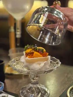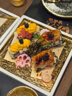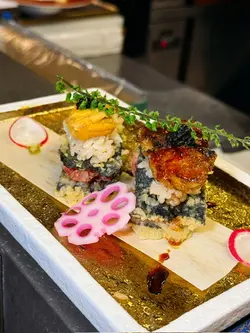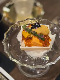 海膽拖羅蓉千層脆脆,焦糖鵝肝和牛千層脆脆