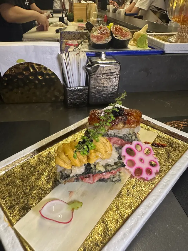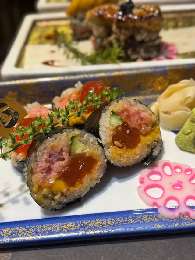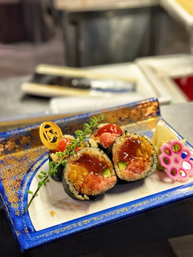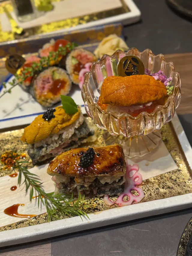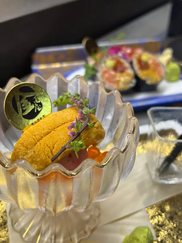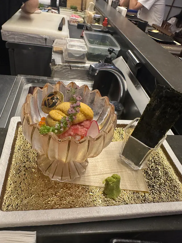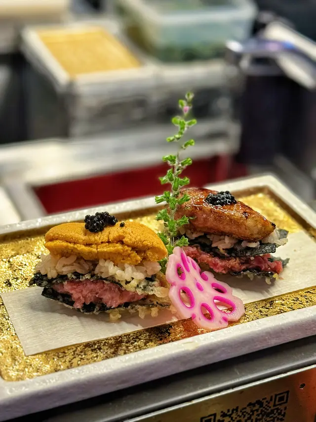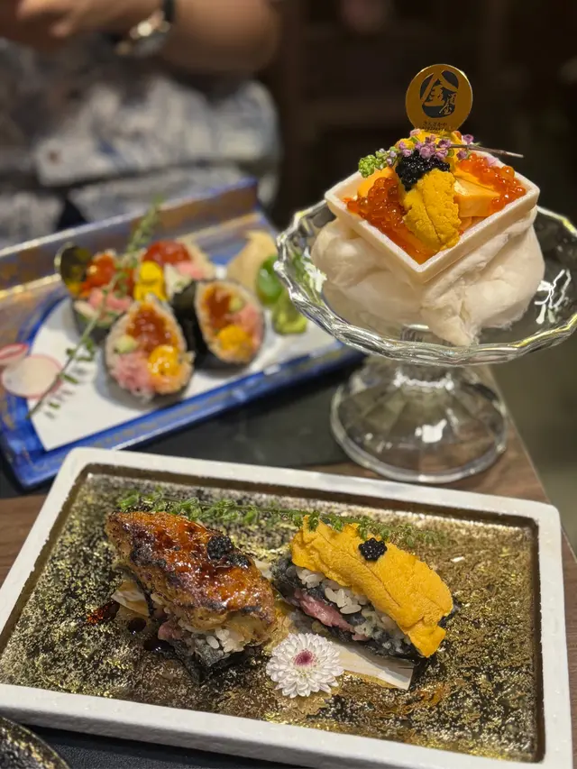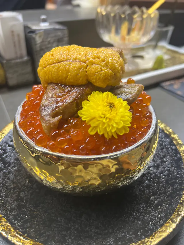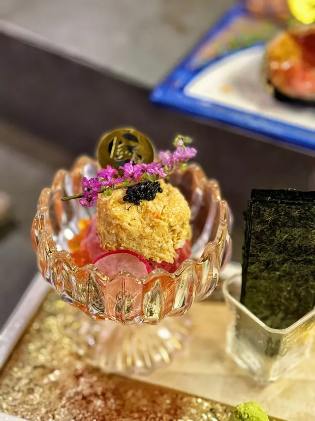 呢間居酒屋令人心心眼😍每樣食物勁靚靚,精心炮製,又好好食餐廳好人氣,勁旺場🔥又睇得又食得✨ 金糖盒-蟹肉三文魚籽日式豆腐蟹肉🦀超豐富🥹加左海膽係入面三文魚籽又好多,勁足料😋同豆腐又好夾,最QQ係加埋綿花糖一齊食✨ 金龍珠海膽吞拿魚蓉卷🍣吞拿魚好新鮮🤤🤤仲配埋海膽飯卷料超多,加埋吞拿魚肉,好正又豐富~✨海膽拖羅蓉千層脆脆好有創意既料理🤩好有驚喜😍海膽超多,有兩層‼️下層係滿滿既吞拿魚蓉😋😋✨焦糖鵝肝和牛千層脆脆鵝肝真係世一🤤🤤上面仲有魚子醬鵝肝下面仲有壽司飯脆脆片片好正,下層配吞拿魚蓉成件事吾會太油膩,好好味👅✨串燒🔥自家製雞皮蝦🤩🤩好有特色,必試‼️厚燒牛舌芯,正中心精華牛舌😍😍西班牙豬肋條,燒得勁香,有肉甜香~~✨炙燒爆膏四頭巨型虎蝦🦐呢個大虎蝦超大隻,好肥美😍有兩個口味,一邊濃濃芝士🧀另一邊個滿滿海膽醬,勁邪惡👿✨滿丼 海膽鵝肝三文魚子飯呢個丼真係巨滿足😌滿瀉既三文魚子鵝肝熱辣辣,肥美juicy😍😍大大海膽好新鮮,勁鮮甜,食完巨滿足🤤…查看更多