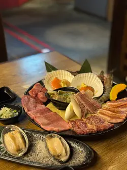 试咗佢哋嘅「极上盛宴二人前A餐」,贪佢乜都有啲咁。整体嚟讲,呢个价钱有呢个质素算系几好。个Set选择都几齐全,牛舌、和牛、猪肉、鸡肉、虾、鲍鱼、带子都有。和牛油花分布算靓,又唔会太腻。牛舌都系必试之选,烧到微微焦香,咬落又弹牙又多汁。仲有个蔬菜盘,食完肉可以解下腻。前菜樱花龙虾沙律豆腐同金目鲷刺身沙律都好新鲜,帮助解腻之余又几开胃,份量都足。最后个草莓牛乳冻奶味浓郁,系个好好嘅结尾。环境舒适,地方宽敞。