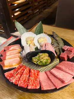 特选烧肉二人餐🥩 ($598)前菜🥗:芥末八爪鱼青瓜矶煮鲍鱼沙律海之幸🦐:香草牛油烧帆立贝盐烧深海虎虾烧肉🥩:日本A5和牛西冷澳洲M9和牛里肌肉28cm安格斯锁链牛肉厚切盐烧牛舌角切黑豚七味芝士烧盐味祸烧手羽中配菜🍎🌽:有机粟米烧有机果物烧碗物🍚:黑松露和牛炒饭甜品🍮:自家制牛乳冻同朋友晚餐食咗呢个二人餐,每人大约二百几蚊都算抵,因为都食到海鲜、唔同款式而且都算高级别嘅肉🤤仲有前菜、主食同甜品等等✨海鲜新鲜,虎虾易脱壳弹牙,帆立贝烧得非常之香,肉类就款款各有特色,但共通点系牛味十足,有啲油脂丰富得嚟唔油腻,非常好食,另外不得不赞系黑松露和牛炒饭,真系做到粒粒分明,而且每粒饭上面仲沾满黑松露粒,食落真系食得出大小颗粒嘅口感,晚饭谂唔到食咩可以试吓✨
