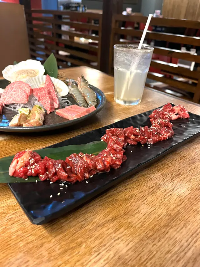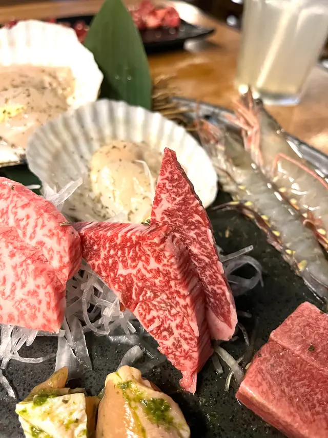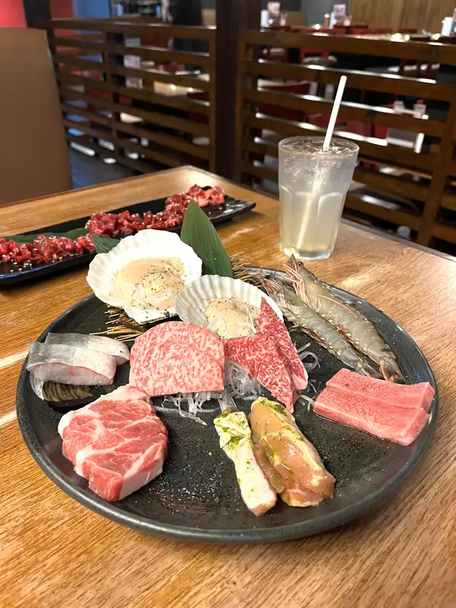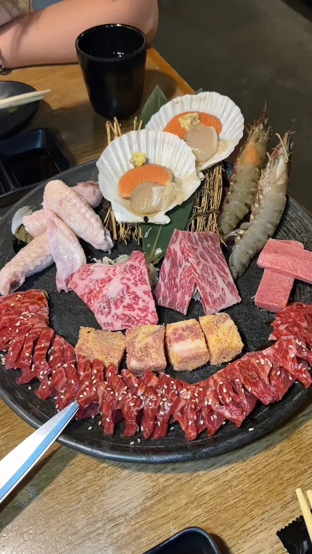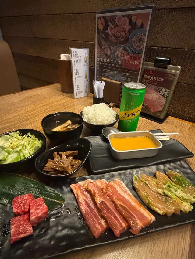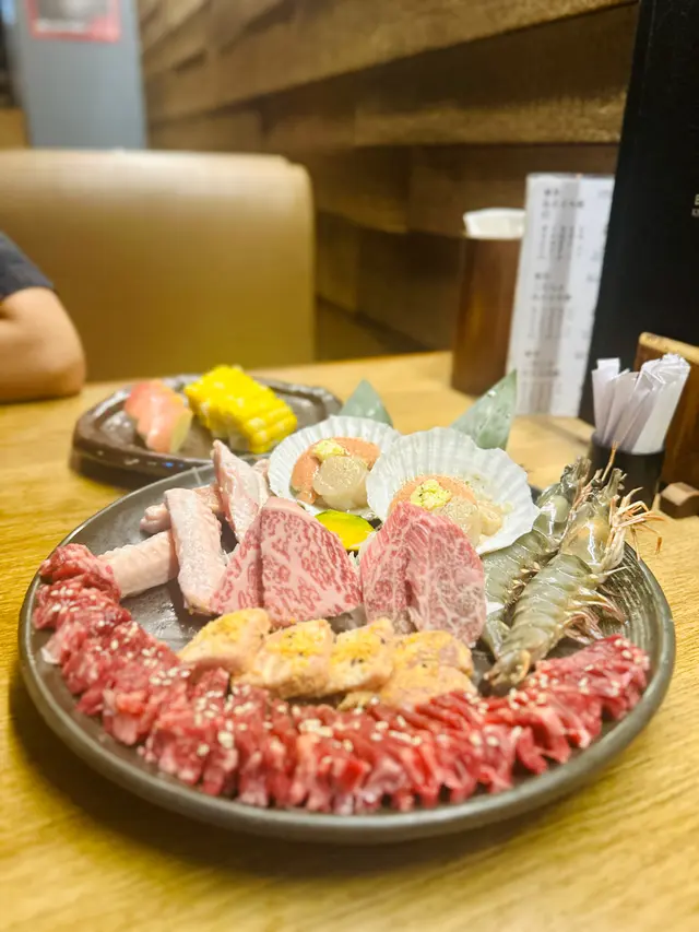 試咗佢哋嘅「極上盛宴二人前A餐」,貪佢乜都有啲咁。整體嚟講,呢個價錢有呢個質素算係幾好。個Set選擇都幾齊全,牛舌、和牛、豬肉、雞肉、蝦、鮑魚、帶子都有。和牛油花分佈算靚,又唔會太膩。牛舌都係必試之選,燒到微微焦香,咬落又彈牙又多汁。仲有個蔬菜盤,食完肉可以解下膩。前菜櫻花龍蝦沙律豆腐同金目鯛刺身沙律都好新鮮,幫助解膩之餘又幾開胃,份量都足。最後個草莓牛乳凍奶味濃郁,係個好好嘅結尾。環境舒適,地方寬敞。…查看更多