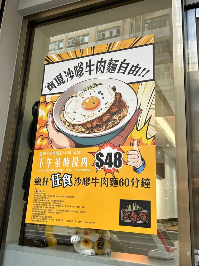 喺銅鑼灣搵到呢間街坊人氣店,餐廳食物份量多,大件夾抵食嘅餐廳,主打各式炒粉麵飯,幾有鑊氣㗎😋古法焦糖炒牛河呢個係餐廳呢招牌菜之一,餐牌上面特別註明用咗李錦記特選生抽 。牛河唔算太油膩,比起坊間嘅炒牛河係偏甜少少,呢種焦香令到個牛河更加有特色🐮 牛肉唔會過分醃製,面頭仲附上一隻燶邊蘭王太陽蛋,蛋汁撈埋牛河更加正😗厚切牛脷咖喱焗飯焗飯嘅主菜都有幾個種類可以選擇,我哋嗌咗厚切牛脷,每片牛脷都整得好軟腍,配埋咖喱汁真係一流👅 底下嘅飯當然係餐廳嘅拿手,炒飯底,夠晒粒粒分明。整個飯焗完出嚟,唔會太燶,面頭嘅芝士輕鬆做到拉絲效果🧀慢煮瑞士雞翼一份有五隻雞翼,每隻都非常飽滿,而且咬開入面仲有好多肉汁🐥 入口都唔會覺得太肥膩。飲品各式嘅樽裝飲品都係統一價錢,我哋嗌咗一枝津路烏龍茶同埋懷舊玻璃樽裝嘅可口可樂🥤 比起平日飲嘅可樂更加有風味。如果唔想嗌飲品嘅話餐廳仲提供自助斟水區🫖呢度嘅食物份量真係大,我估計三個人叫兩碟都會夠飽,兩碟入面必定要叫一碟炒飯或者焗飯,佢嘅炒飯真係十分出色👍🏻…查看更多