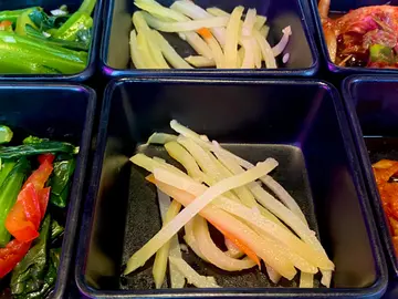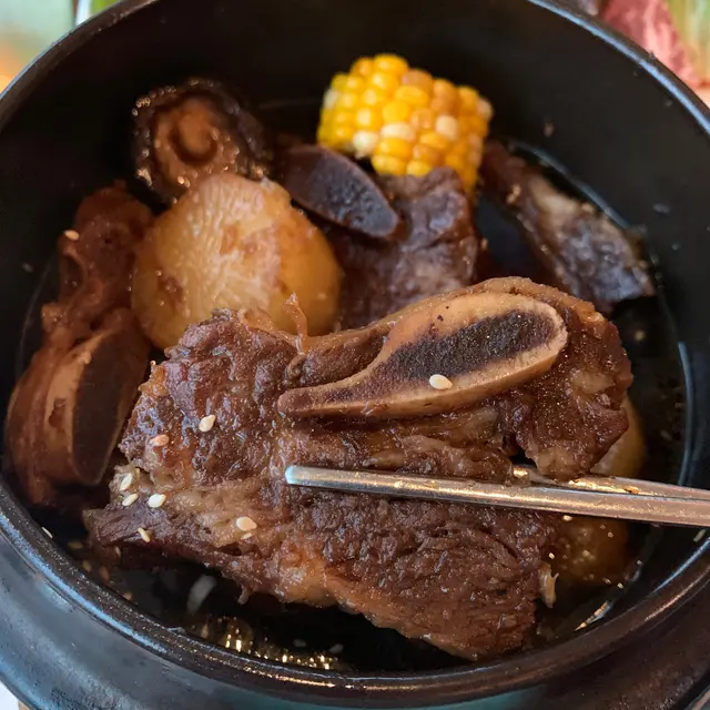 菠菜、泡菜、土豆丝,不过不失无意见唔难食,送饭助力良好开胃。习惯食韩餐的小碟都装得满满,眼前几碟只有零星的份量完全唔习惯。泡菜猪肉汤饭,嘈喧巴闭喷著烟吱吱渣渣送到,甚有气氛﹗香喷喷的泡菜辣汤气味,大量爽脆泡菜搭极少量猪肉碎,大大啖灌入,辛辣带甜合格。传统正宗食法当然系将饭倒落汤,而不是将汤倒落饭。这样汤会变冻,食得慢的话饭亦太腍,我喜欢分几次将饭加入滚汤中,边食边加,尽量令汤汁保持高温品尝,才最美味﹗蚝油唐生菜,食不到菜甜味,有点甘涩味,爽脆微黄。烤牛仔骨饭,甜笠笠的烧汁,腍啤啤的肉质,伴饭唔难食,明白一分钱一分货。烤牛仔骨饭,没什么特别,平平淡淡,食完都唔记得食过。…查看更多