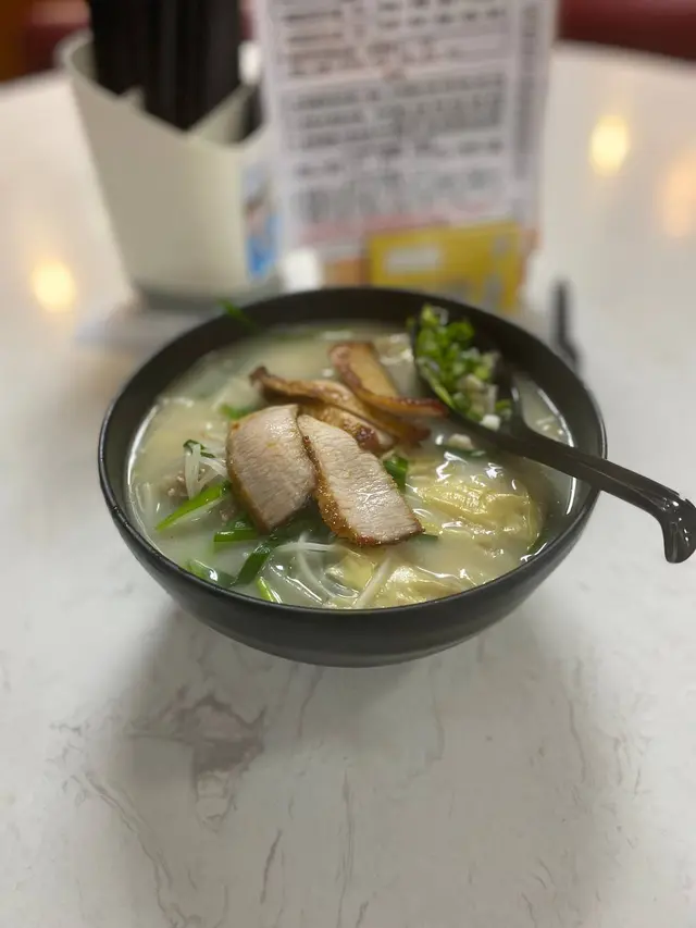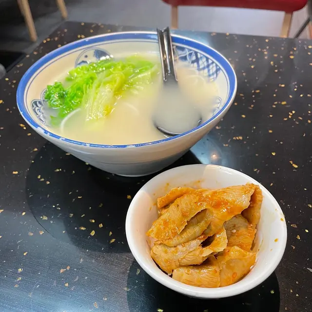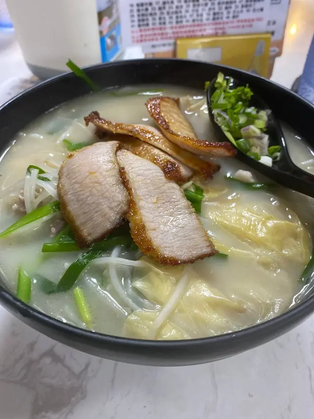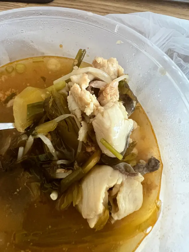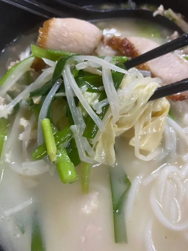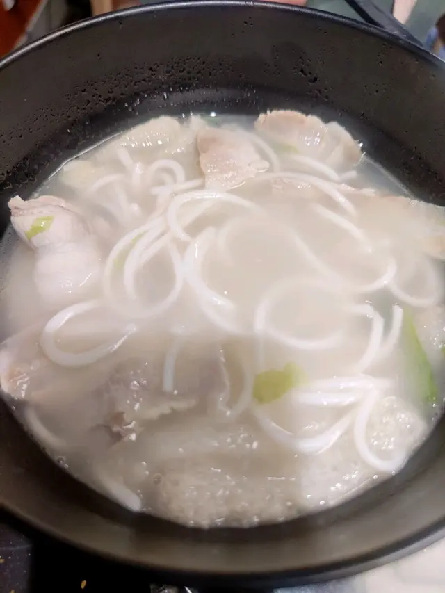 清湯米線+豬腩肉+食咗的生菜、竹笙