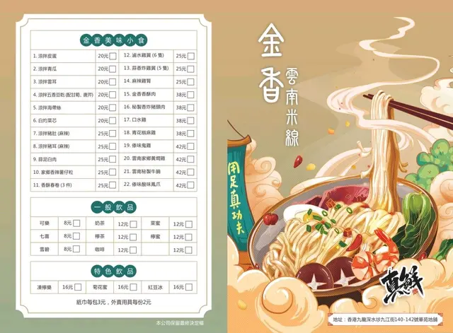 金香雲南米線 (深水埗) 网址: https://s.openrice.com/QrLS0FvSB00 地址: 香港深水埗九江街140-142號華苑地下A&B號舖 电话: +852 93028836