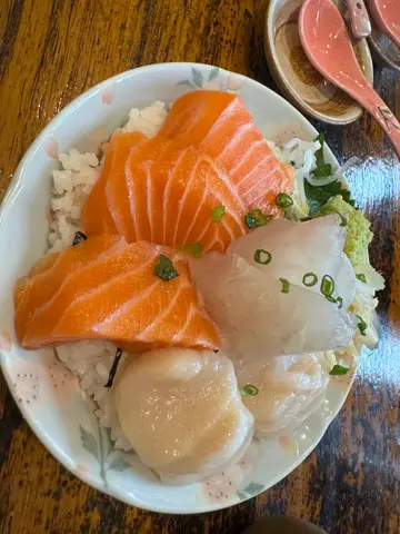 估唔到医院附近有咁好食嘅日本小店~位置唔系好多🥲开中午12点 12点15分到已经得返1张2人枱 本身叫咗普通角切鱼生丼。但见到有个油甘鱼三色丼劲吸引 店员仲要话系琴晚啱啱到货 即刻转咗🤣油甘鱼三色丼 🐟🍣$138每一块鱼生都系厚切 仲食得出鲜味但略嫌寿司饭整得太湿 同埋酸度唔够唔似靓嘅日本米🥺🍚…查看更多