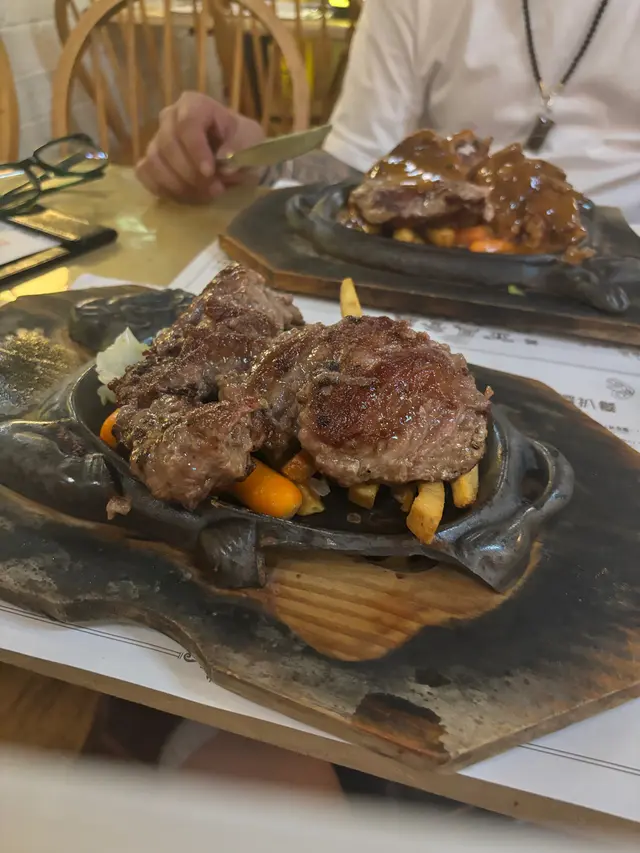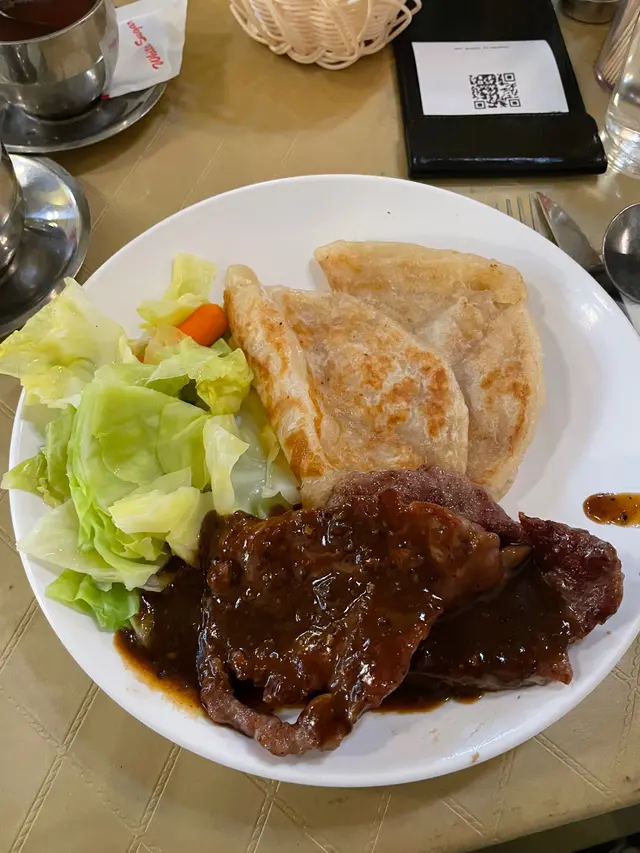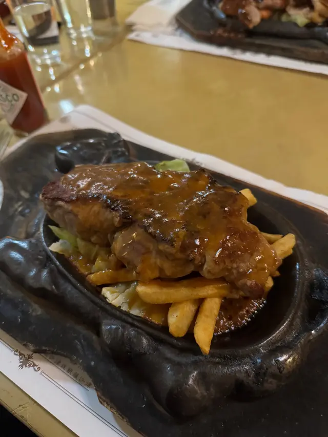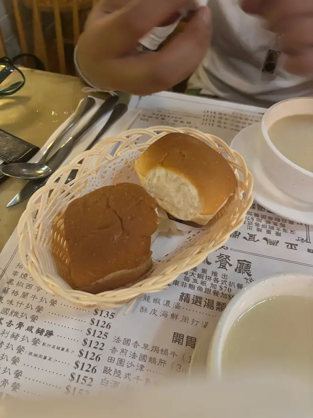 嗌扒餐會包一份餐包+餐湯 羅宋湯都算多蔬菜 全部都煲到好腍 食落有啲酸酸辣辣嘅感覺 幾開胃🙂↕️ 反而忌廉湯就有少少失望 整體比較稀 飲落亦都冇乜味🥲 餐包係室溫 不過都軟熟🍞|招牌牛柳餐望落都幾大塊 切開出嚟都見到有啲厚到🤏🏻 熟度都應該同我嗌嘅七成一樣🤭 食落除咗燒汁之外 塊牛都冇乜味 又冇乜咬口 醃到超級腍🫠 |美味什扒餐一共有火腿扒、腸仔、豬扒同牛扒🥩 火腿扒同腸仔正正常常冇乜特別 但豬扒同牛扒 同牛柳一樣都係冇乜味 同埋醃到好腍嘅感覺🥹唔夠飽嘅話另外可以加錢配蒜蓉茄汁意粉🍝 意粉嘅軟硬適中 茄汁都唔會太重口味🫣 最後飲品一定要記得加大 如果唔係就會好細杯‼️…查看更多