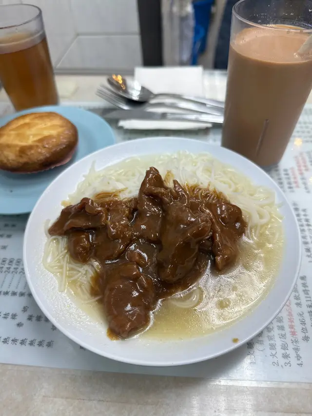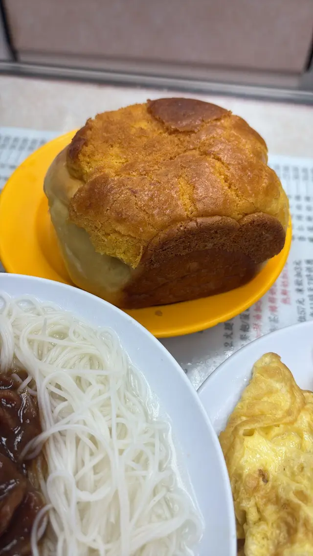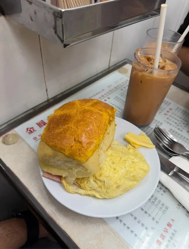 網紅店,伏。相都唔想影。菠蘿油重量係夠嘅,但係完全冇麵粉香味,牛油都唔係凍嘅,個包嘅撳落去無彈性,實嘅。火腿通粉,可取之處係火腿絲好厚,但係啲通粉,好難形容,咬落去好腍又好實,個湯底有味嘅但係我真係食唔出佢係咩味。火腿煎雙蛋(反蛋),個廚係非常啲神奇咁一隻生一隻全熟。火腿冇煎過失敗,厚底。馳名凍無冰奶茶,冇奶味冇茶味冇滑度,仲要喺個萬年膠桶度倒出嚟。$56,以灣仔區嚟講佢唔算貴嘅,不過唔應該係吹捧到明星電咁囉。除非冇得揀得隔離係G奶冰室同金鳳,咁我就會揀金鳳嘅。…查看更多