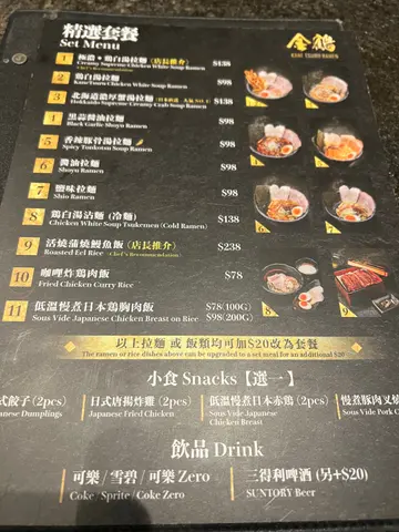 平时一碗拉面食唔晒但系又唔想浪费 TT 一定要黎试下金鹤拉面嘅鸡白汤拉面!download app登记做会员仲可以即送可口可乐一罐/溏心蛋一只🥚😍 (店员都好好人同埋热情🤣🫶🏻)-1.鸡白汤拉面 (全份 $98/ 可爱的小份 $78)今次叫左可爱的小份 性价比高 份量啱啱好 加埋免费溏心蛋 够晒饱🫣😬 鸡白汤底好出色 味道浓郁 唔会太油/食到好滞 好好食~有两块鸡肉同埋一块叉烧 肉嘅质素唔会好鞋😋 拉面弹牙 有咬口 好抵食😭😭-2.汁烧原只鱿鱼筒 $108鱿鱼筒🦑加埋酱汁好好食!易咬同埋热辣辣~ 份量都多 3-4个人分都可以🫶🏻-✅加一推荐指数: 🦐🦐🦐🦐.5性价比指数:🦐🦐🦐🦐…查看更多